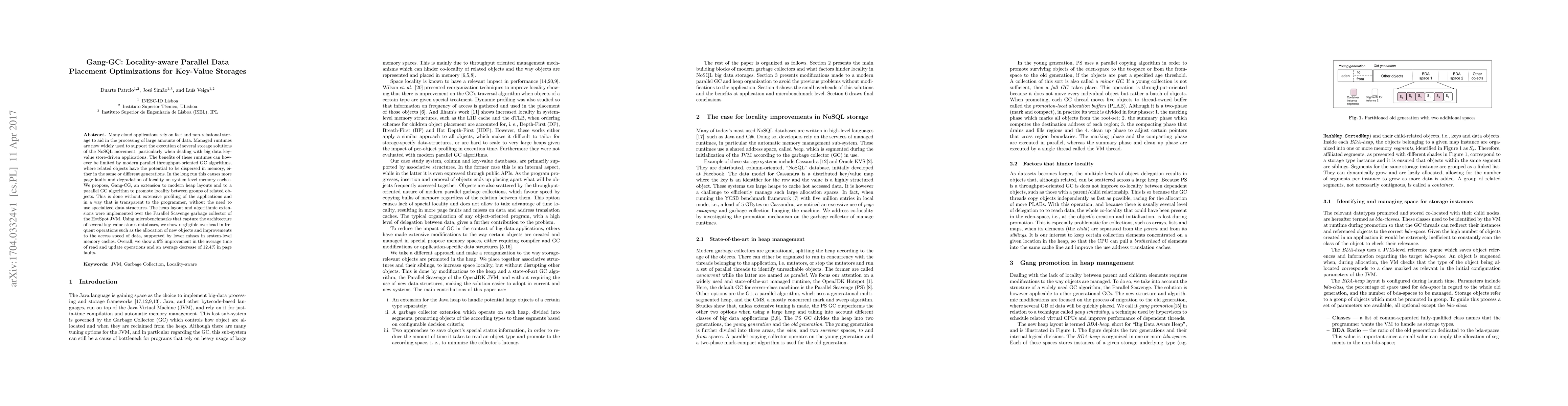 Many cloud applications rely on fast and non-relational storage to aid in the processing of large amounts of data. Managed runtimes are now widely used to support the execution of several storage solutions of the NoSQL movement, particularly when dealing with big data key-value store-driven applications. The benefits of these runtimes can however be limited by modern parallel throughput-oriented GC algorithms, where related objects have the potential to be dispersed in memory, either in the same or different generations. In the long run this causes more page faults and degradation of locality on system-level memory caches. We propose, Gang-CG, an extension to modern heap layouts and to a parallel GC algorithm to promote locality between groups of related objects. This is done without extensive profiling of the applications and in a way that is transparent to the programmer, without the need to use specialized data structures. The heap layout and algorithmic extensions were implemented over the Parallel Scavenge garbage collector of the HotSpot JVM\@. Using microbenchmarks that capture the architecture of several key-value stores databases, we show negligible overhead in frequent operations such as the allocation of new objects and improvements to the access speed of data, supported by lower misses in system-level memory caches. Overall, we show a 6\% improvement in the average time of read and update operations and an average decrease of 12.4\% in page faults.