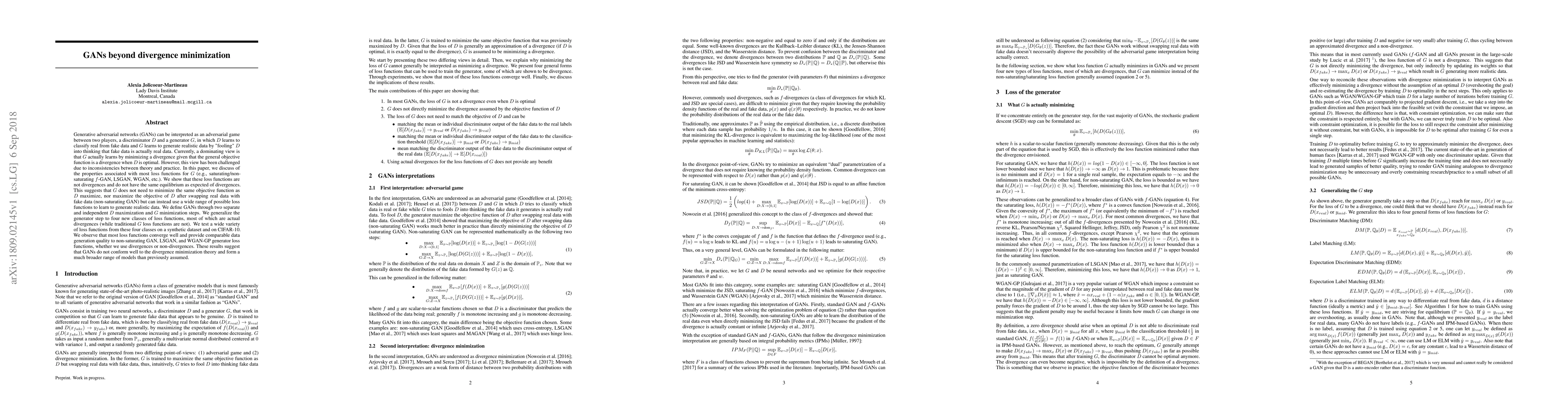 The paper analyzes GAN loss functions, proposing new classes and demonstrating their effectiveness through experiments on synthetic and CIFAR-10 datasets. It challenges the common belief that GANs minimize divergences, suggesting a broader range of possible loss functions.