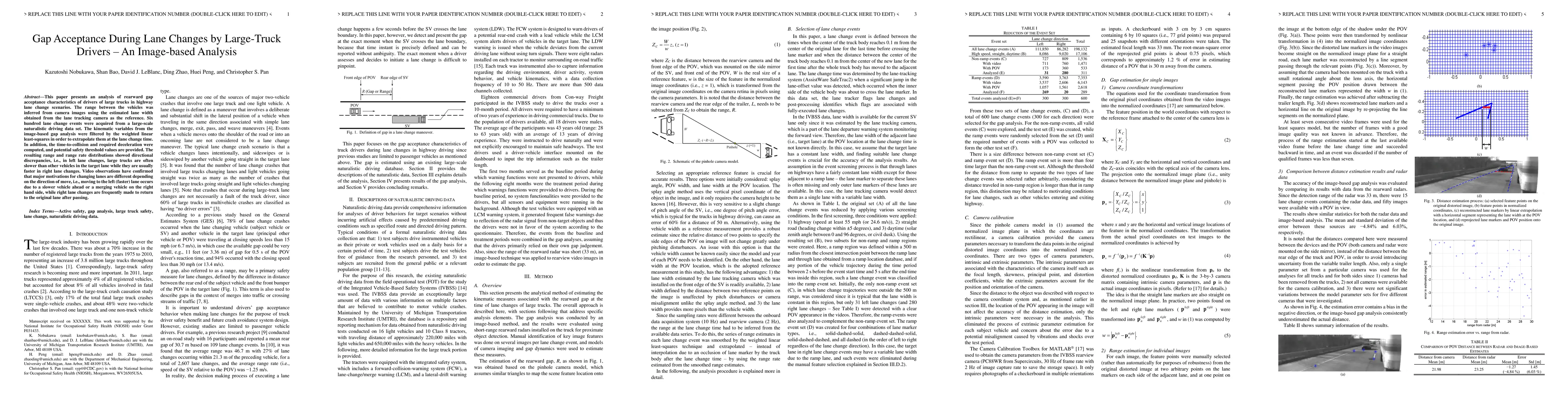 This study analyzes large-truck drivers' gap acceptance during lane changes using naturalistic driving data and image-based methods, revealing directional discrepancies in speed and motivations for lane changes based on video observations. Safety thresholds for time-to-collision and deceleration are also provided.