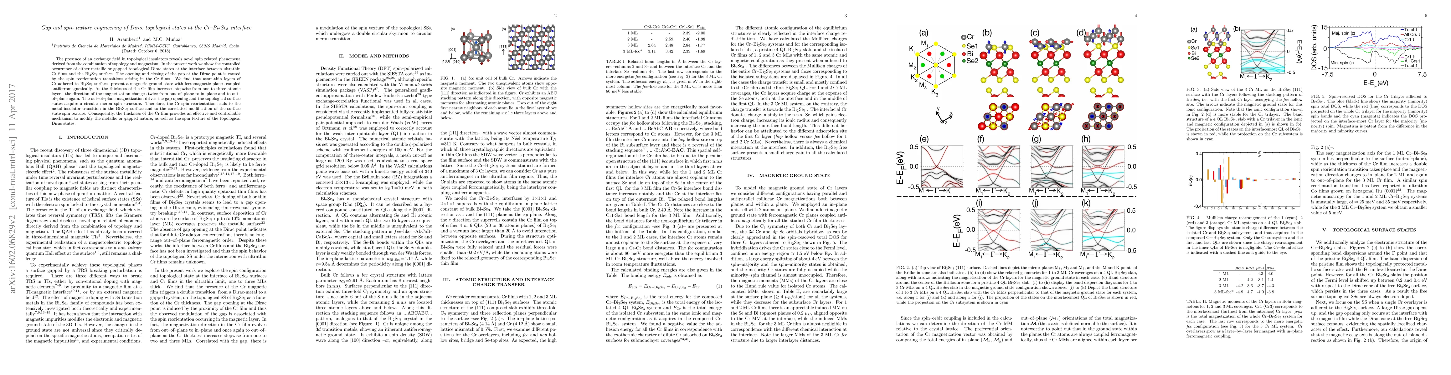 The presence of an exchange field in topological insulators reveals novel spin related phenomena derived from the combination of topology and magnetism. In the present work we show the controlled occurrence of either metallic or gapped topological Dirac states at the interface between ultrathin Cr films and the Bi$_2$Se$_3$ surface. The opening and closing of the gap at the Dirac point is caused by the spin reorientation transitions arising in the Cr films. We find that atom thin layers of Cr adhered to Bi$_2$Se$_3$ surfaces present a magnetic ground state with ferromagnetic planes coupled antiferromagnetically. As the thickness of the Cr film increases stepwise from one to three atomic layers, the direction of the magnetization changes twice from out-of-plane to in-plane and to out-of-plane again. The out of plane magnetization drives the gap opening and the topological surface states acquire a circular meron spin structure. Therefore, the Cr spin reorientation leads to the metal/insulator transition in the Bi$_2$Se$_3$ surface and to the correlated modification of the surface state spin texture. Consequently, the thickness of the Cr film provides an effective and controllable mechanism to modify the metallic or gapped nature, as well as the spin texture of the topological Dirac states.