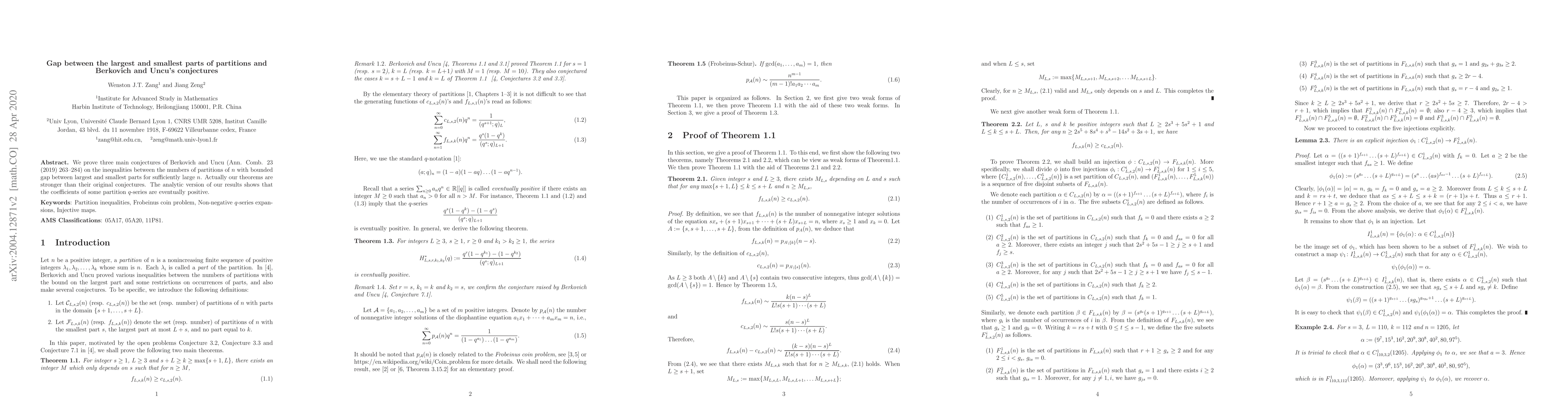 Summary: We prove stronger versions of three conjectures by Berkovich and Uncu regarding inequalities between partition numbers with bounded gaps between largest and smallest parts for large $n$. Our results also demonstrate that the coefficients of certain partition $q$-series are eventually positive.