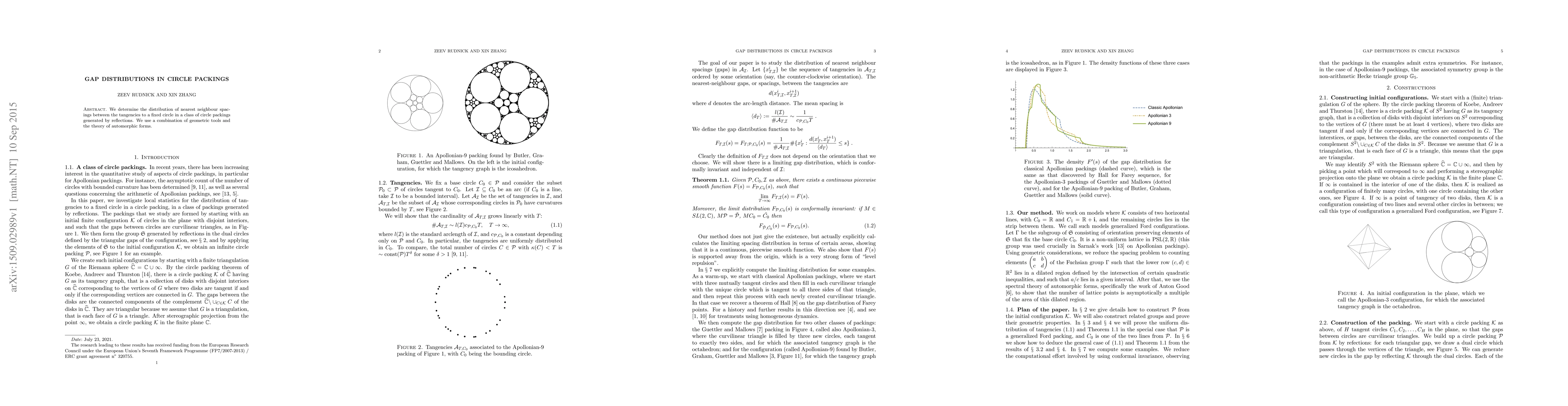 Researchers studied circle packings generated by reflections to determine the distribution of nearest neighbor spacings between tangencies, using geometric tools and automorphic forms.