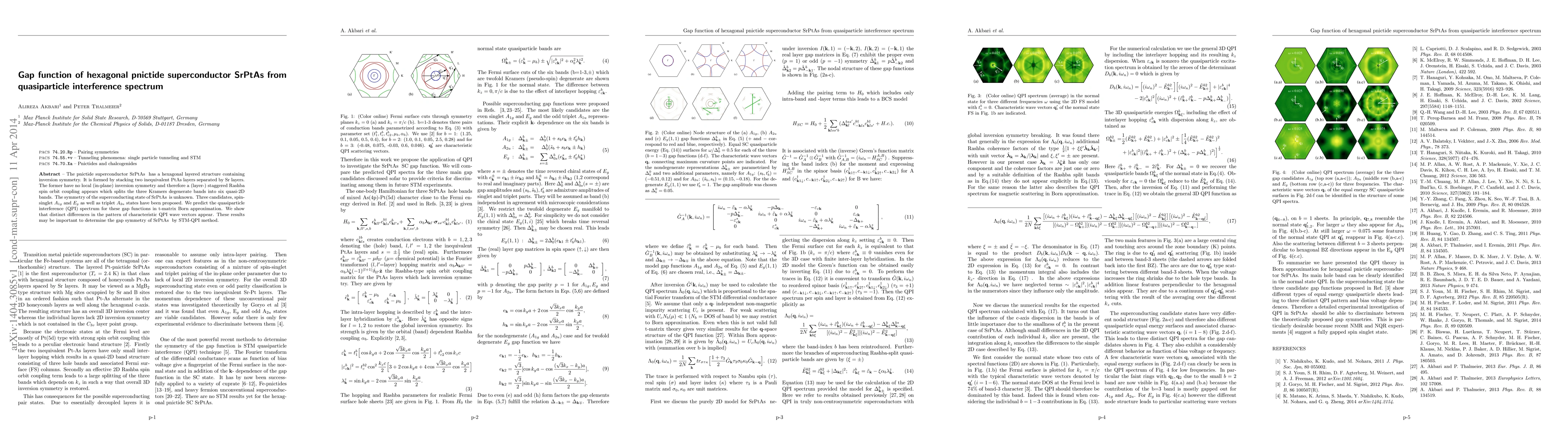 This paper investigates the gap function of the hexagonal pnictide superconductor SrPtAs using quasiparticle interference (QPI) spectrum analysis. The study predicts distinct QPI patterns for potential superconducting gap symmetries, which could help determine the exact symmetry of SrPtAs's superconducting state via STM-QPI measurements.