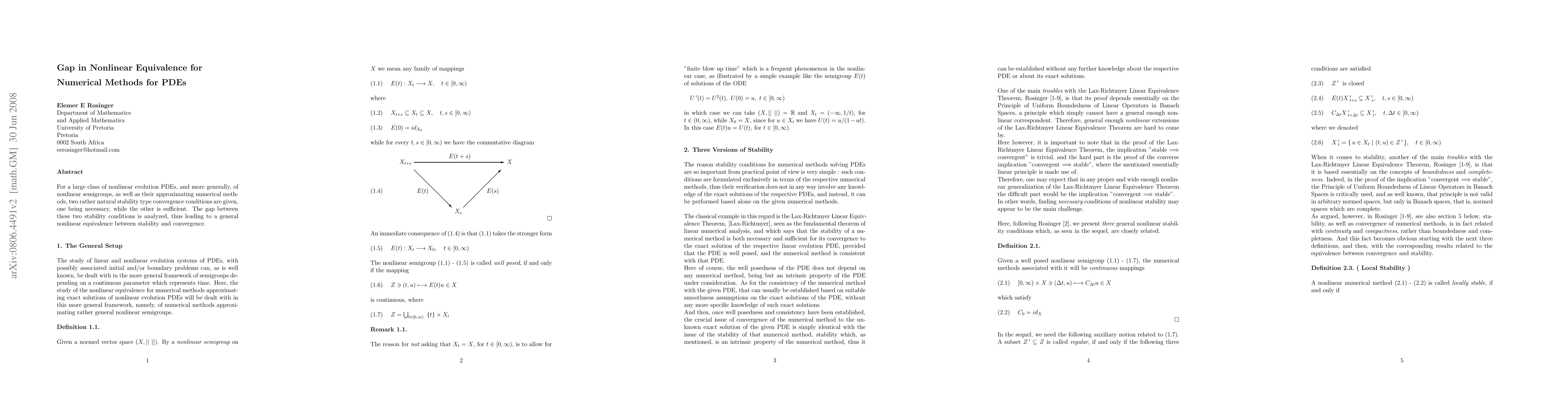 For a large class of nonlinear evolution PDEs, and more generally, of nonlinear semigroups, as well as their approximating numerical methods, two rather natural stability type convergence conditions are given, one being necessary, while the other is sufficient. The gap between these two stability conditions is analyzed, thus leading to a general nonlinear equivalence between stability and convergence.