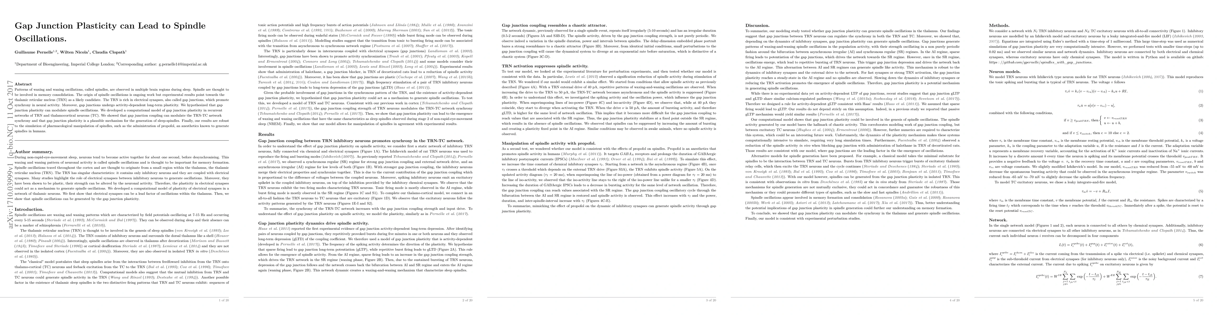 This research explores how gap junction plasticity in the thalamic reticular nucleus (TRN) can modulate spindle oscillations, which are crucial for memory consolidation. The study uses a computational model to demonstrate that changes in gap junction coupling can influence TRN-thalamocortical network synchrony, suggesting a plausible mechanism for generating sleep spindles.
