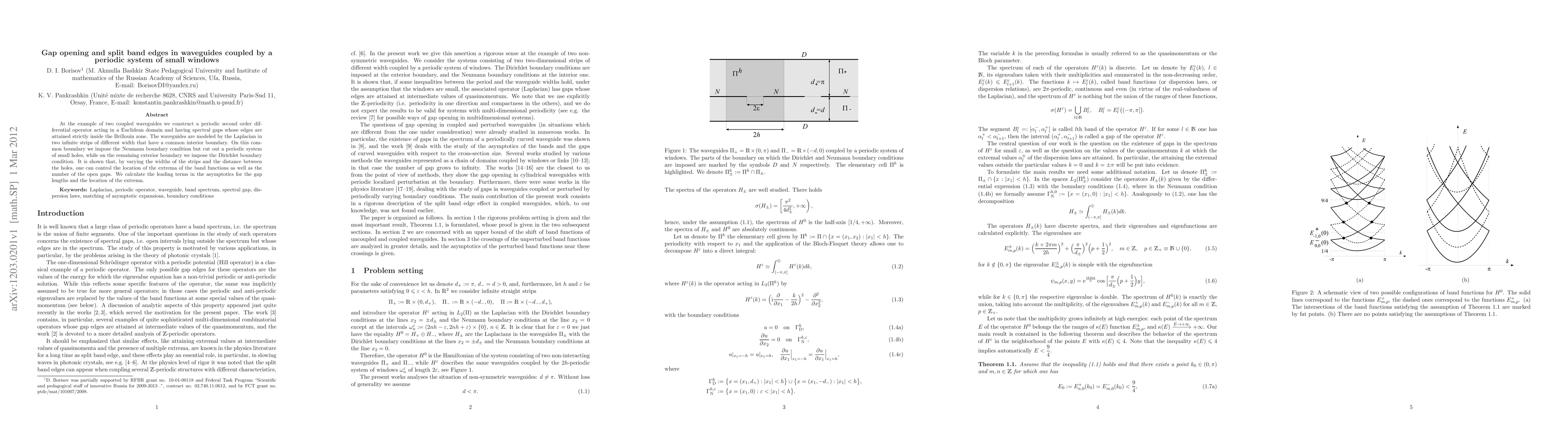 This paper investigates the spectral properties of a periodic system of coupled waveguides modeled by a second-order differential operator. By adjusting the waveguide widths and hole distances, the authors control the location of band edge extrema and the number of spectral gaps, calculating the leading asymptotic terms for gap lengths and extrema positions.