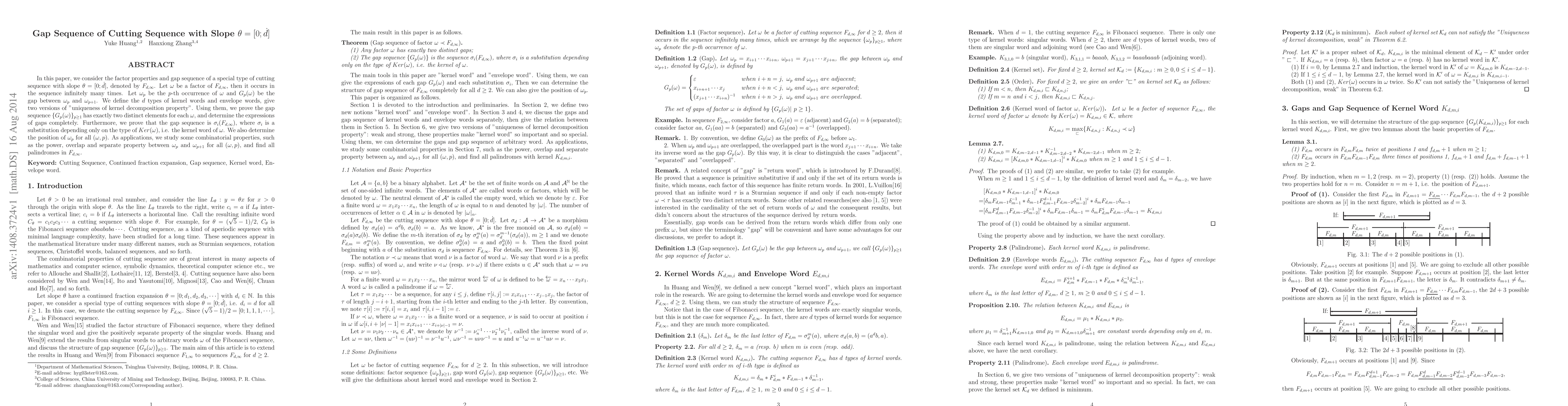 This research paper investigates a type of cutting sequence with slope θ=[0;××], finding that the gap sequence has exactly two distinct elements for each factor and determining its expressions. The paper also explores combinatorial properties and applications, such as palindrome detection.
