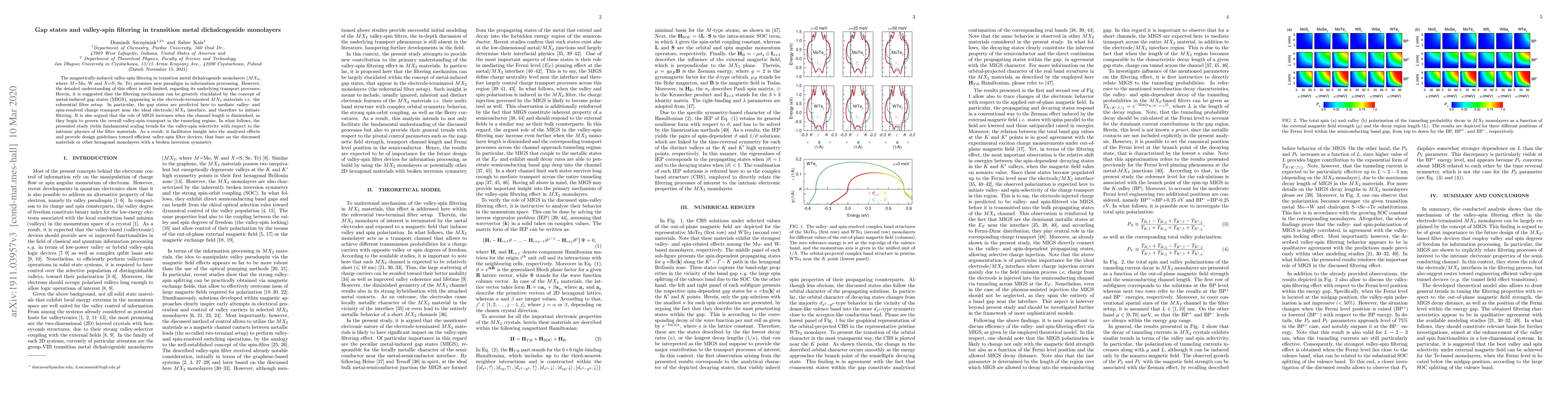 The magnetically-induced valley-spin filtering in transition metal dichalcogenide monolayers ($MX_{2}$, where $M$=Mo, W and $X$=S, Se, Te) promises new paradigm in information processing. However, the detailed understanding of this effect is still limited, regarding its underlying transport processes. Herein, it is suggested that the filtering mechanism can be greately elucidated by the concept of metal-induced gap states (MIGS), appearing in the electrode-terminated $MX_{2}$ materials {\it i.e.} the referential filter setup. In particular, the gap states are predicted here to mediate valley- and spin-resolved charge transport near the ideal electrode/$MX_{2}$ interface, and therefore to initiate filtering. It is also argued that the role of MIGS increases when the channel length is diminished, as they begin to govern the overall valley-spin transport in the tunneling regime. In what follows, the presented study yields fundamental scaling trends for the valley-spin selectivity with respect to the intrinsic physics of the filter materials. As a result, it facilitates insight into the analyzed effects and provide design guidelines toward efficient valley-spin filter devices, that base on the discussed materials or other hexagonal monolayers with a broken inversion symmetry.