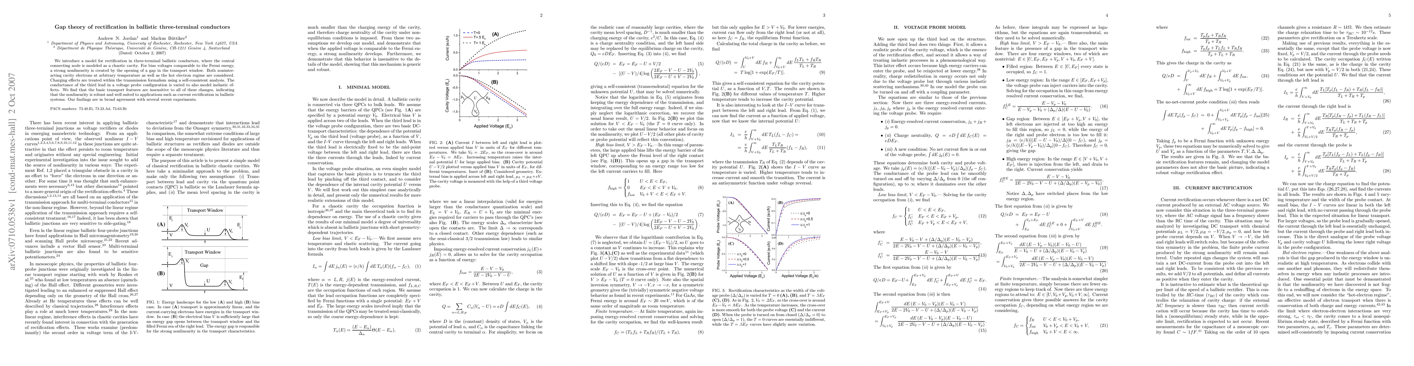 This paper proposes a model for rectification in three-terminal ballistic conductors, where a gap in the transport window creates strong nonlinearity due to a chaotic cavity. The model's robustness is demonstrated through various analyses, indicating its potential for current rectification applications.