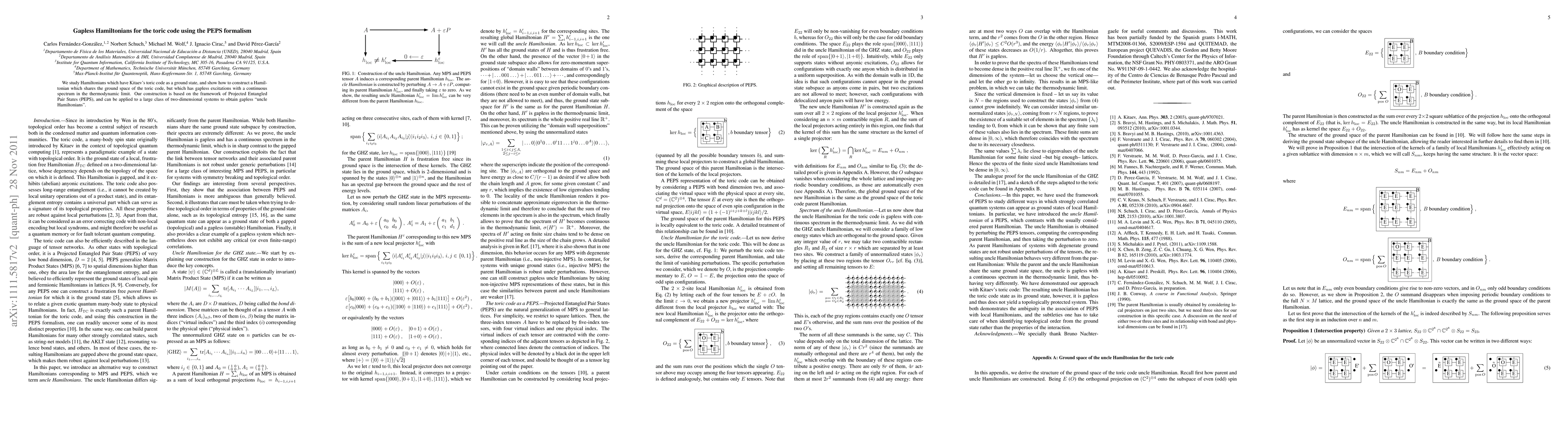 This paper constructs gapless Hamiltonians for the toric code using the PEPS formalism, demonstrating how to create a Hamiltonian that shares the ground space of the toric code but introduces gapless excitations with a continuous spectrum in the thermodynamic limit. The method is applicable to a wide range of two-dimensional systems.