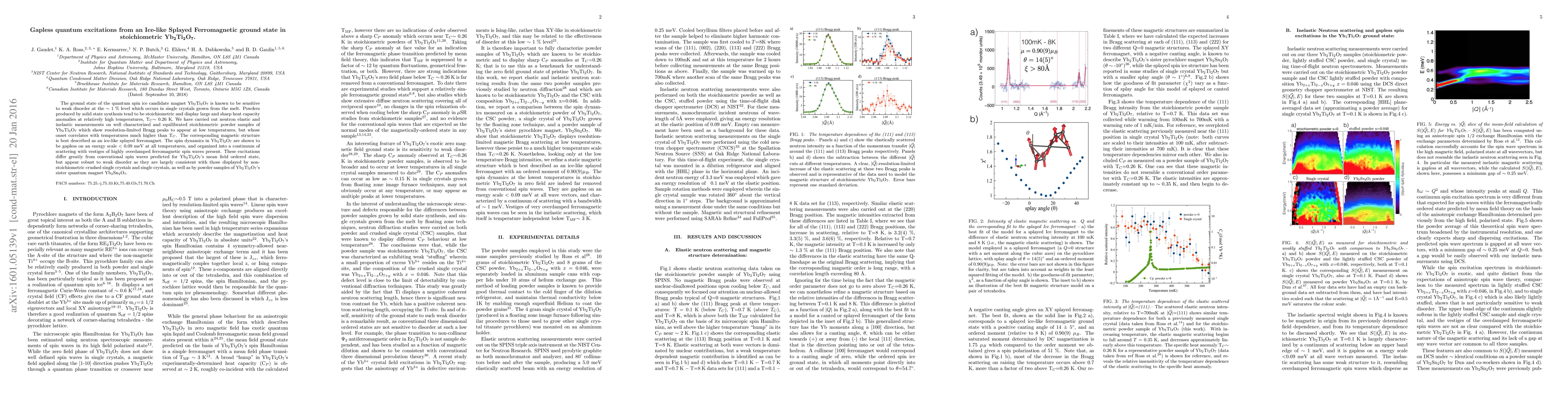 This paper investigates the ground state and spin dynamics of Yb2Ti2O7, revealing a gapless quantum excitation continuum in its ice-like splayed ferromagnetic structure, which remains robust against weak disorder and is consistent across different sample types.