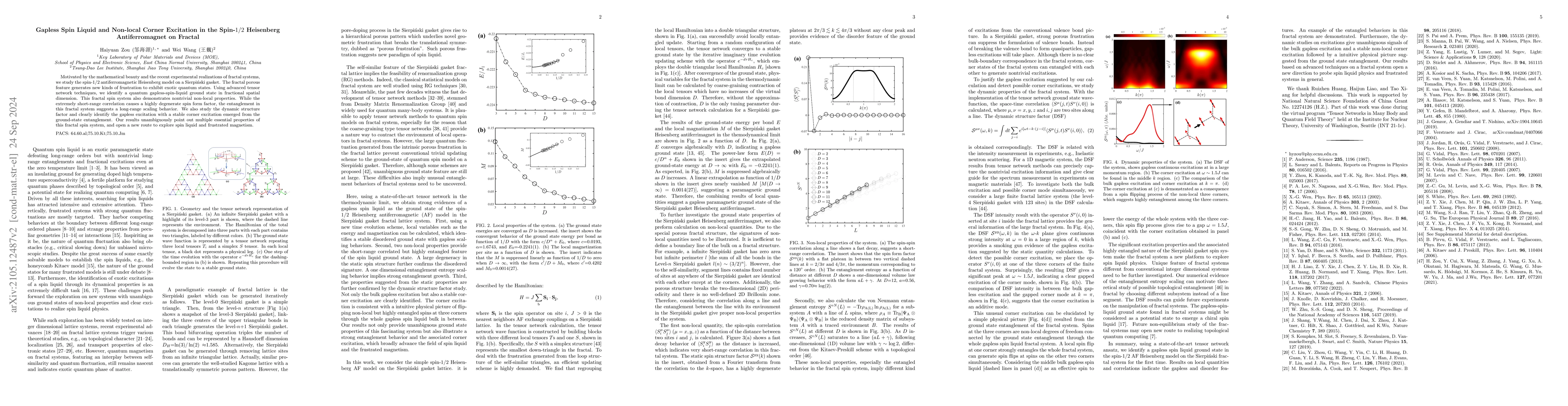 The research identifies a gapless spin liquid state in a spin-1/2 antiferromagnetic Heisenberg model on a Sierpinski gasket fractal, using tensor network techniques. It reveals non-local corner excitations and distinct scaling behaviors in fractional spatial dimensions, offering insights into frustrated magnetism.