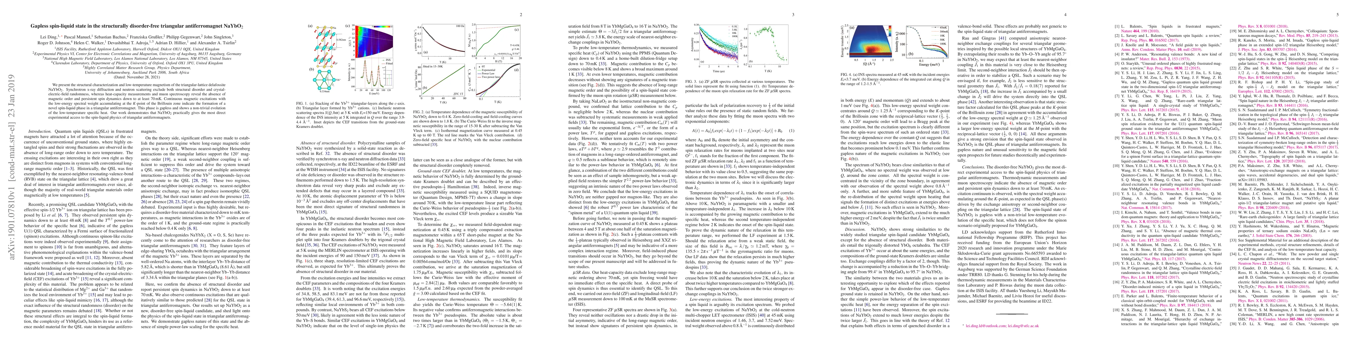We present the structural characterization and low-temperature magnetism of the triangular-lattice delafossite NaYbO$_2$. Synchrotron x-ray diffraction and neutron scattering exclude both structural disorder and crystal-electric-field randomness, whereas heat-capacity measurements and muon spectroscopy reveal the absence of magnetic order and persistent spin dynamics down to at least 70\,mK. Continuous magnetic excitations with the low-energy spectral weight accumulating at the $K$-point of the Brillouin zone indicate the formation of a novel spin-liquid phase in a triangular antiferromagnet. This phase is gapless and shows a non-trivial evolution of the low-temperature specific heat. Our work demonstrates that NaYbO$_2$ practically gives the most direct experimental access to the spin-liquid physics of triangular antiferromagnets.