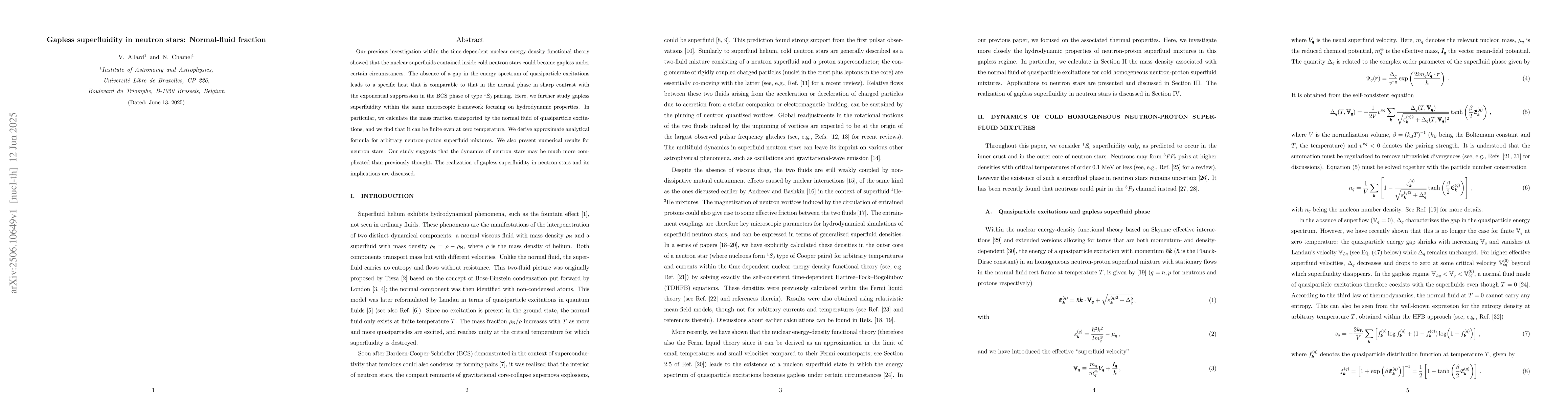 Researchers investigate gapless superfluidity in neutron stars, finding that normal fluid components can transport mass at zero temperature, complicating the dynamics of these celestial objects.