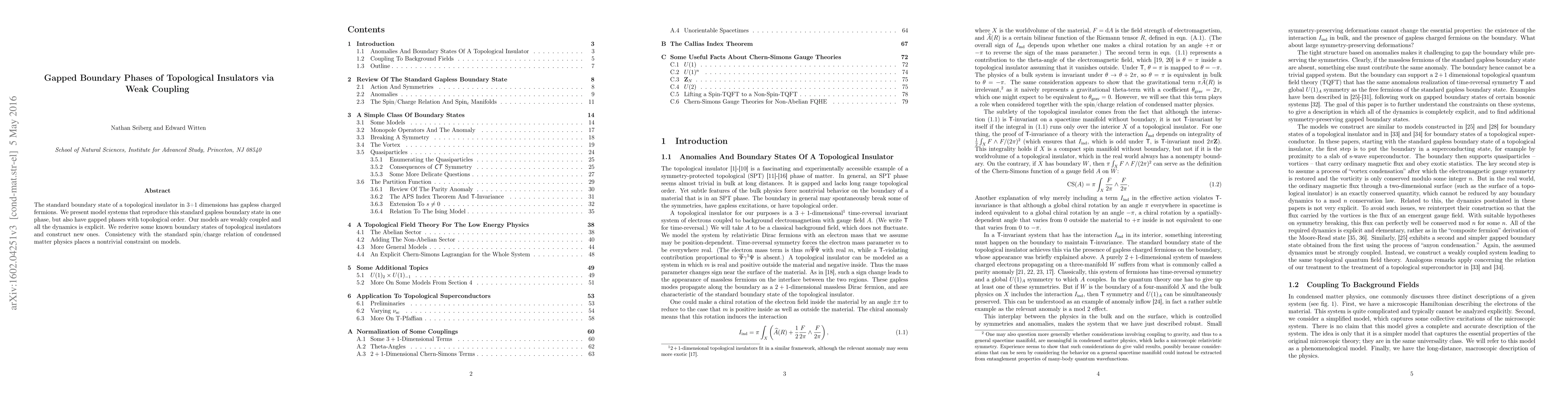 This paper explores model systems that exhibit both gapless and gapped boundary states in topological insulators, demonstrating weakly coupled phases with topological order. The models maintain explicit dynamics and consistency with standard spin/charge relations, offering new insights into topological boundary states.