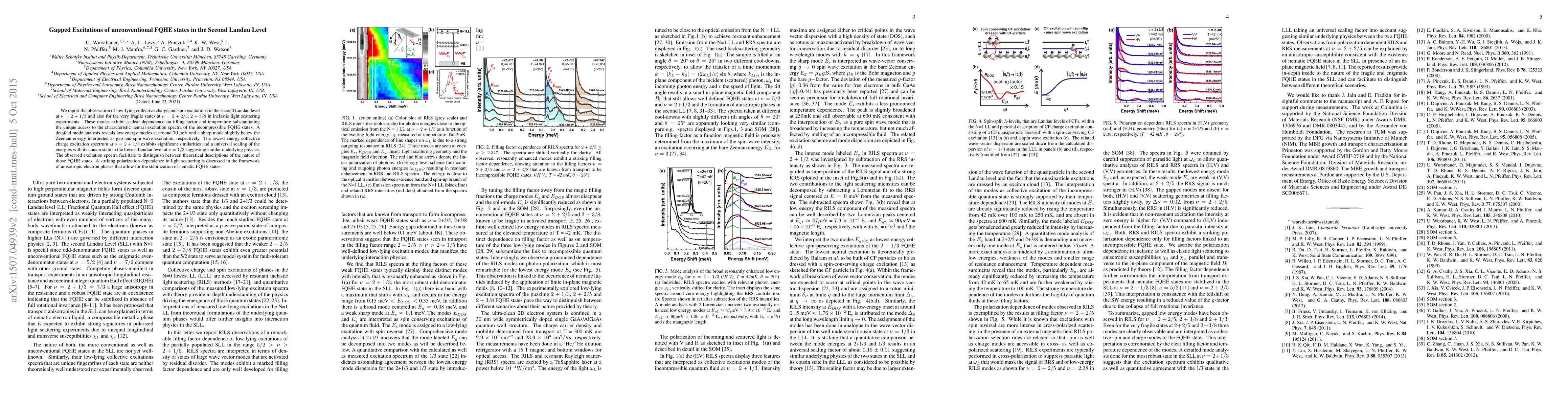 We report the observation of low-lying collective charge and spin excitations in the second Landau level at {\nu} = 2 + 1/3 and also for the very fragile states at {\nu} = 2 + 2/5, 2 + 3/8 in inelastic light scattering experiments. These modes exhibit a clear dependence on filling factor and temperature substantiating the unique access to the characteristic neutral excitation spectra of the incompressible FQHE states. A detailed mode analysis reveals low energy modes at around 70 {\mu}eV and a sharp mode slightly below the Zeeman energy interpreted as gap and spin wave excitation, respectively. The lowest energy collective charge excitation spectrum at {\nu} = 2 + 1/3 exhibits significant similarities and a universal scaling of the energies with its cousin state in the lowest Landau level at {\nu} = 1/3 suggesting similar underlying physics. The observed excitation spectra facilitate to distinguish between theoretical descriptions of the nature of those FQHE states. A striking polarization dependence in light scattering is discussed in the framework of anisotropic electron phases that allow for the stabilization of nematic FQHE states.
