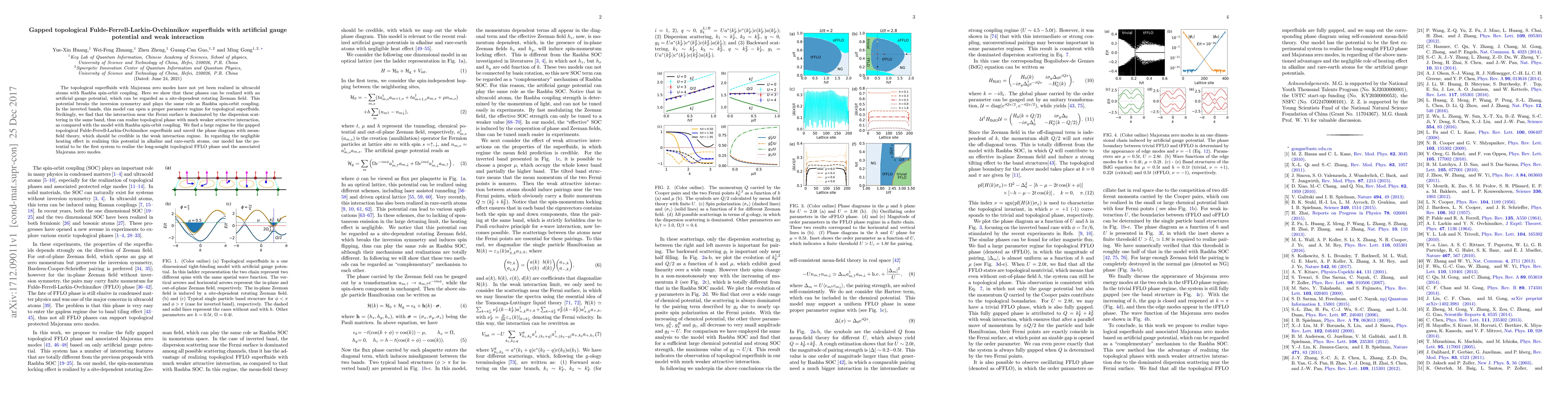 This paper demonstrates the realization of topological Fulde-Ferrell-Larkin-Ovchinnikov (FFLO) superfluids in ultracold atoms using an artificial gauge potential, which mimics Rashba spin-orbit coupling. The model shows that weaker attractive interactions can achieve topological phases compared to traditional methods.