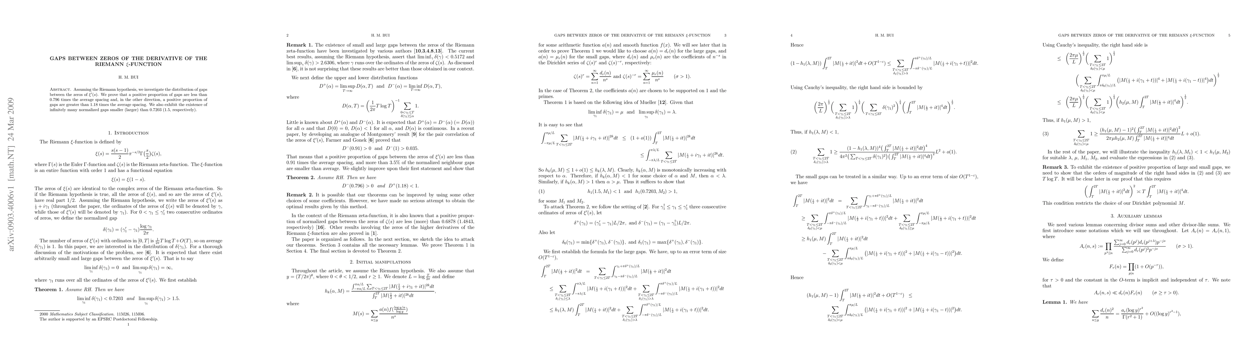 The work extends previous studies on gaps between zeros of the Riemann zeta function by focusing on the derivative of the Riemann xi-function and providing more refined bounds on gap distributions.