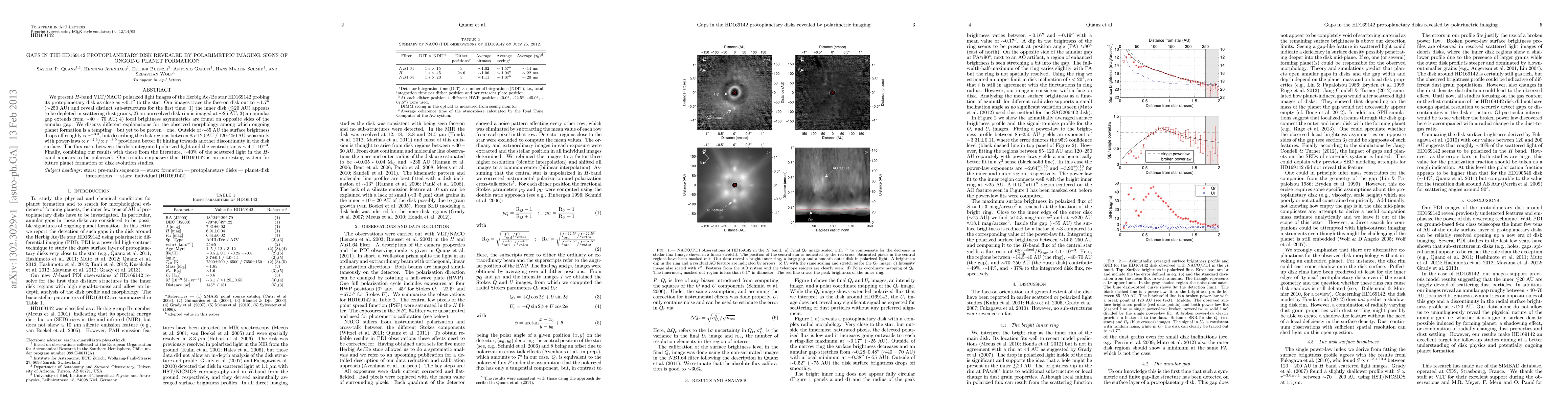 We present H-band VLT/NACO polarized light images of the Herbig Ae/Be star HD169142 probing its protoplanetary disk as close as ~0.1" to the star. Our images trace the face-on disk out to ~1.7" (~250 AU) and reveal distinct sub-structures for the first time: 1) the inner disk (<20 AU) appears to be depleted in scattering dust grains; 2) an unresolved disk rim is imaged at ~25 AU; 3) an annular gap extends from ~40 - 70 AU; 4) local brightness asymmetries are found on opposite sides of the annular gap. We discuss different explanations for the observed morphology among which ongoing planet formation is a tempting - but yet to be proven - one. Outside of ~85 AU the surface brightness drops off roughly r^{-3.3}, but describing the disk regions between 85-120 AU / 120-250 AU separately with power-laws r^{-2.6} / r^{-3.9} provides a better fit hinting towards another discontinuity in the disk surface. The flux ratio between the disk integrated polarized light and the central star is ~4.1 * 10^{-3}. Finally, combining our results with those from the literature, ~40% of the scattered light in the H-band appears to be polarized. Our results emphasize that HD169142 is an interesting system for future planet formation or disk evolution studies.