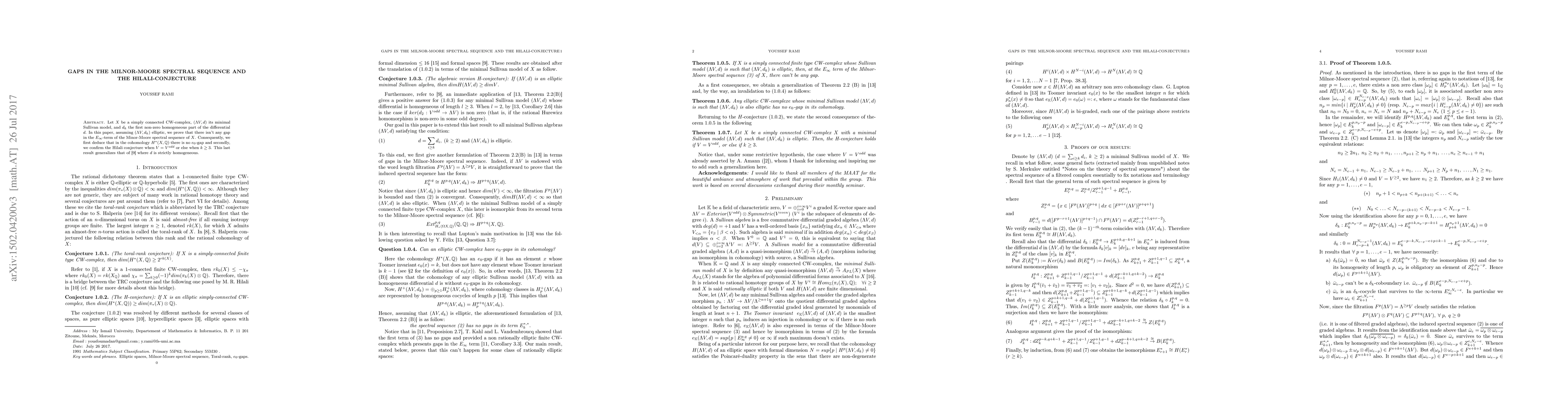 In his study of Halperin's toral-rank conjecture, M. R. Hilali conjectured that for any simply connected rationally elliptic space $X$, one must have $dim\pi_*(X)\otimes \mathbb{Q} \leq dimH^*(X,\mathbb{Q})$. Let $(\Lambda V, d)$ denote a Sullivan minimal model of $X$ and $d_k$ the first non-zero homogeneous part of the differential $d$. In this paper, we use spectral sequence arguments to prove that if $(\Lambda V, d_k)$ is elliptic, then, there is no gaps in the $E_{\infty}$ term of the Milnor-Moore spectral sequence of $X$. Consequently, we confirm the Hilali conjecture when $V = V^{odd}$ or else when $k\geq 3$ and $(\Lambda V, d_k)$ is elliptic.