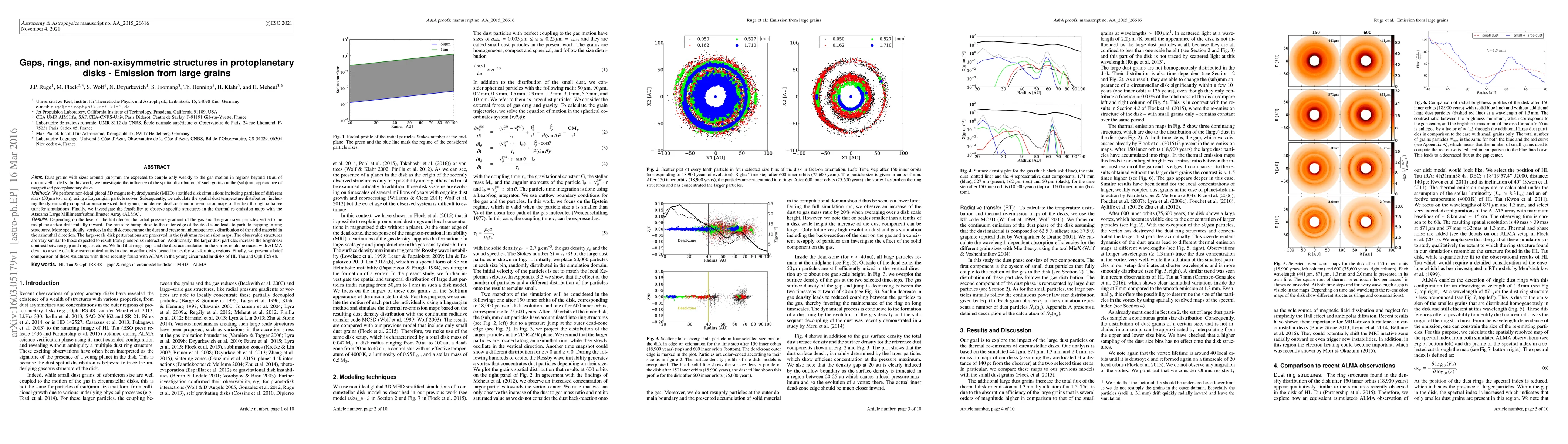 Dust grains with sizes around (sub)mm are expected to couple only weakly to the gas motion in regions beyond 10 au of circumstellar disks. In this work, we investigate the influence of the spatial distribution of such grains on the (sub)mm appearance of magnetized protoplanetary disks. We perform non-ideal global 3D magneto-hydrodynamic stratified disk simulations including particles of different sizes (50 micron to 1 cm), using a Lagrangian particle solver. We calculate the spatial dust temperature distribution, including the dynamically coupled submicron-sized dust grains, and derive ideal continuum re-emission maps of the disk through radiative transfer simulations. Finally, we investigate the feasibility to observe specific structures in the thermal re-emission maps with the Atacama Large Millimeter/submillimeter Array (ALMA). The pressure bump close to the outer edge of the dead-zone leads to particle trapping in ring structures. More specifically, vortices in the disk concentrate the dust and create an inhomogeneous distribution of the solid material in the azimuthal direction. The large-scale disk perturbations are preserved in the (sub)mm re-emission maps. The observable structures are very similar to those expected to result from planet-disk interaction. The larger dust particles increase the brightness contrast between gap and ring structures. We find that rings, gaps and the dust accumulation in the vortex could be traced with ALMA down to a scale of a few astronomical units in circumstellar disks located in nearby star-forming regions. Finally, we present a brief comparison of these structures with those recently found with ALMA in the young circumstellar disks of HL Tau and Oph IRS 48.