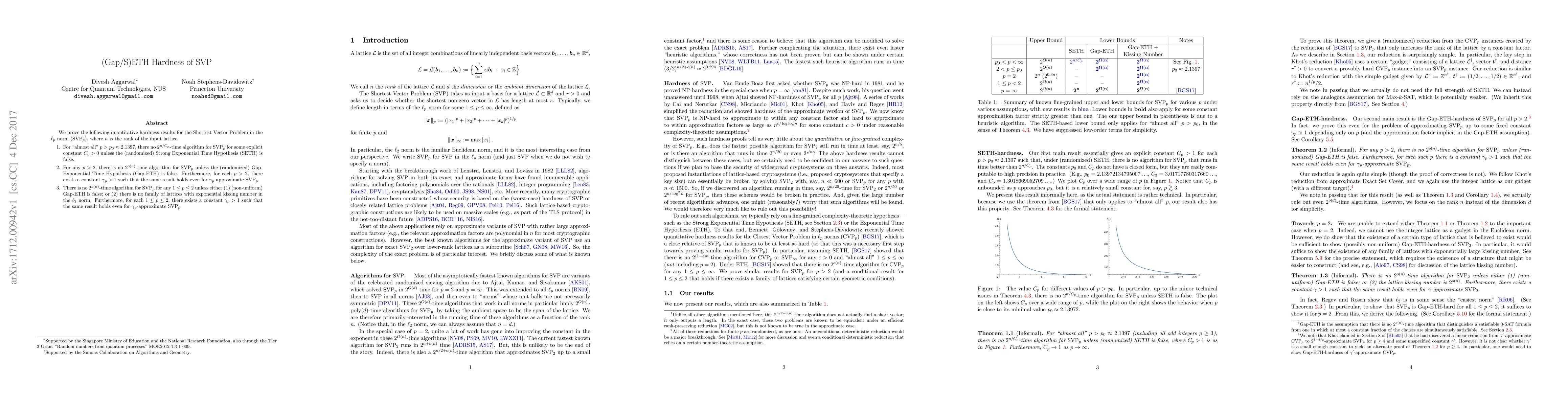 $ \newcommand{\problem}[1]{\ensuremath{\mathrm{#1}} } \newcommand{\SVP}{\problem{SVP}} \newcommand{\ensuremath}[1]{#1} $We prove the following quantitative hardness results for the Shortest Vector Problem in the $\ell_p$ norm ($\SVP_p$), where $n$ is the rank of the input lattice. $\bullet$ For "almost all" $p > p_0 \approx 2.1397$, there no $2^{n/C_p}$-time algorithm for $\SVP_p$ for some explicit constant $C_p > 0$ unless the (randomized) Strong Exponential Time Hypothesis (SETH) is false. $\bullet$ For any $p > 2$, there is no $2^{o(n)}$-time algorithm for $\SVP_p$ unless the (randomized) Gap-Exponential Time Hypothesis (Gap-ETH) is false. Furthermore, for each $p > 2$, there exists a constant $\gamma_p > 1$ such that the same result holds even for $\gamma_p$-approximate $\SVP_p$. $\bullet$ There is no $2^{o(n)}$-time algorithm for $\SVP_p$ for any $1 \leq p \leq 2$ unless either (1) (non-uniform) Gap-ETH is false; or (2) there is no family of lattices with exponential kissing number in the $\ell_2$ norm. Furthermore, for each $1 \leq p \leq 2$, there exists a constant $\gamma_p > 1$ such that the same result holds even for $\gamma_p$-approximate $\SVP_p$.