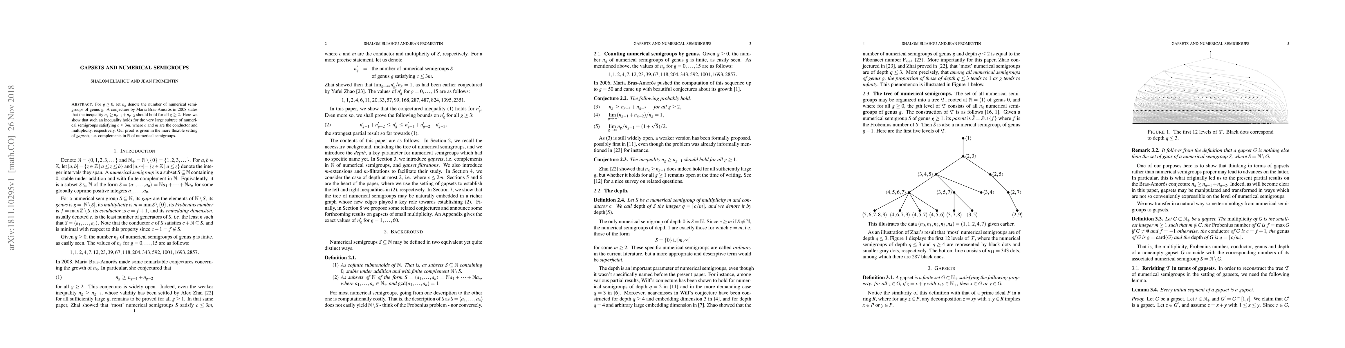For g $\ge$ 0, let n g denote the number of numerical semi-groups of genus g. A conjecture by Maria Bras-Amor\'os in 2008 states that the inequality n g $\ge$ n g--1 + n g--2 should hold for all g $\ge$ 2. Here we show that such an inequality holds for the very large subtree of numerical semigroups satisfying c $\le$ 3m, where c and m are the conductor and multiplicity, respectively. Our proof is given in the more flexible setting of gapsets, i.e. complements in N of numerical semigroups.