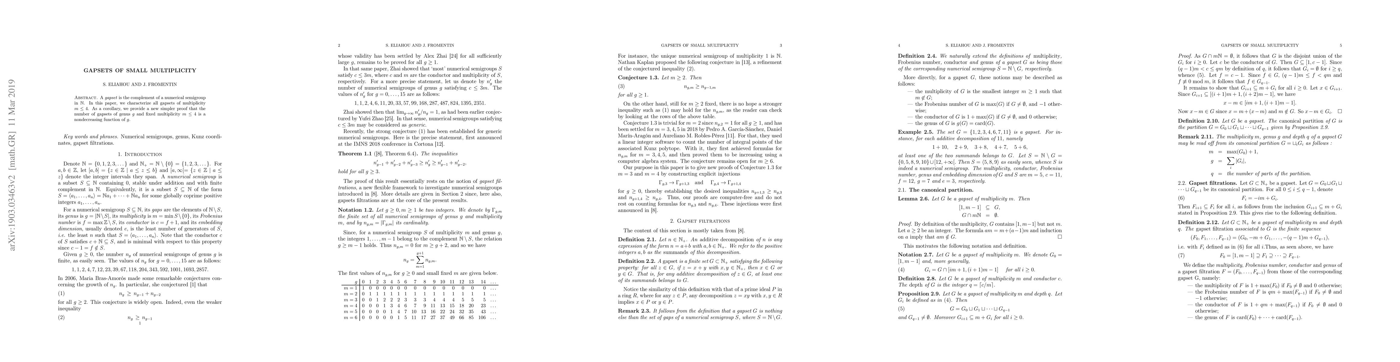 A gapset is the complement of a numerical semigroup in N. In this paper, we characterize all gapsets of multiplicity m $\le$ 4. As a corollary, we provide a new simpler proof that the number of gapsets of genus g and fixed multiplicity m $\le$ 4 is a nondecreasing function of g.