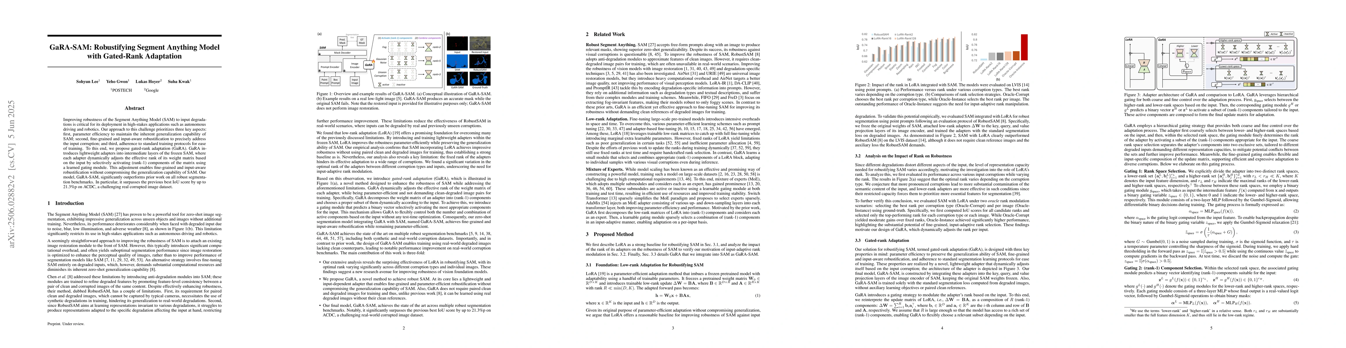 The research proposes GaRA, a method that introduces lightweight adapters into intermediate layers of the frozen Segment Anything Model (SAM). These adapters dynamically adjust the effective rank of their weight matrix based on input corruption via a learned gating module, enabling fine-grained and input-aware robustification.