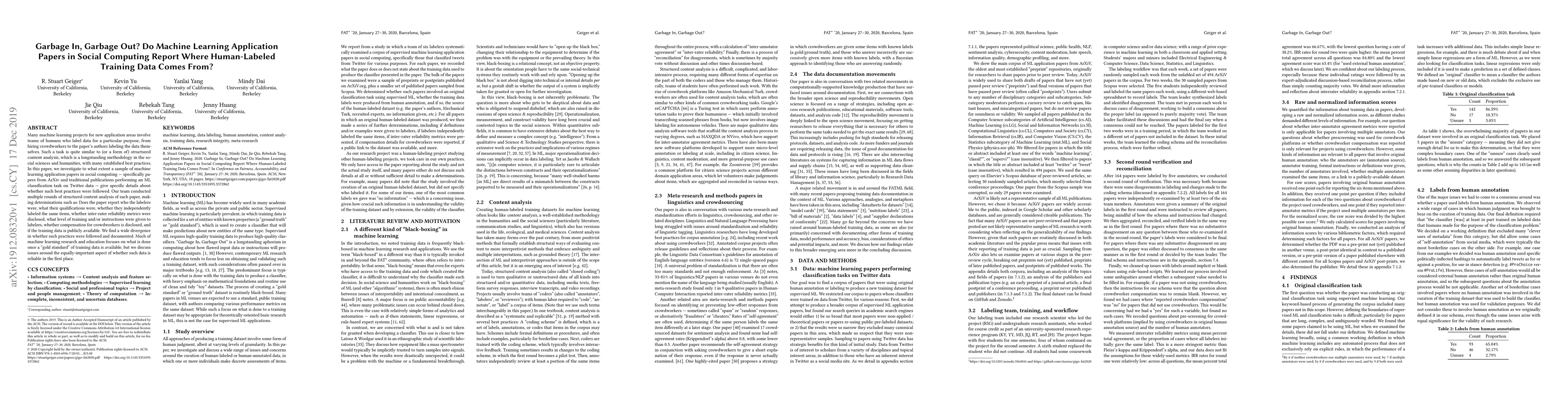 Many machine learning projects for new application areas involve teams of humans who label data for a particular purpose, from hiring crowdworkers to the paper's authors labeling the data themselves. Such a task is quite similar to (or a form of) structured content analysis, which is a longstanding methodology in the social sciences and humanities, with many established best practices. In this paper, we investigate to what extent a sample of machine learning application papers in social computing --- specifically papers from ArXiv and traditional publications performing an ML classification task on Twitter data --- give specific details about whether such best practices were followed. Our team conducted multiple rounds of structured content analysis of each paper, making determinations such as: Does the paper report who the labelers were, what their qualifications were, whether they independently labeled the same items, whether inter-rater reliability metrics were disclosed, what level of training and/or instructions were given to labelers, whether compensation for crowdworkers is disclosed, and if the training data is publicly available. We find a wide divergence in whether such practices were followed and documented. Much of machine learning research and education focuses on what is done once a "gold standard" of training data is available, but we discuss issues around the equally-important aspect of whether such data is reliable in the first place.