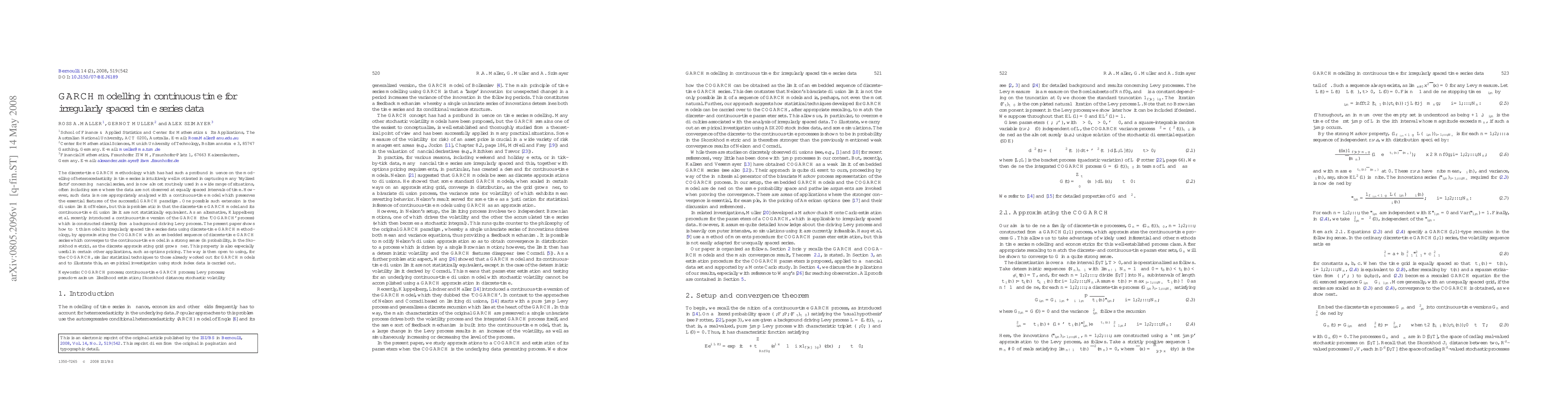 This paper extends GARCH modelling to continuous time for irregularly spaced time series data by introducing the COGARCH process, which is derived from a Lévy process. It demonstrates the fitting of this model using discrete-time GARCH methodology, showing strong convergence to the continuous-time model, and conducts an empirical investigation using stock index data.