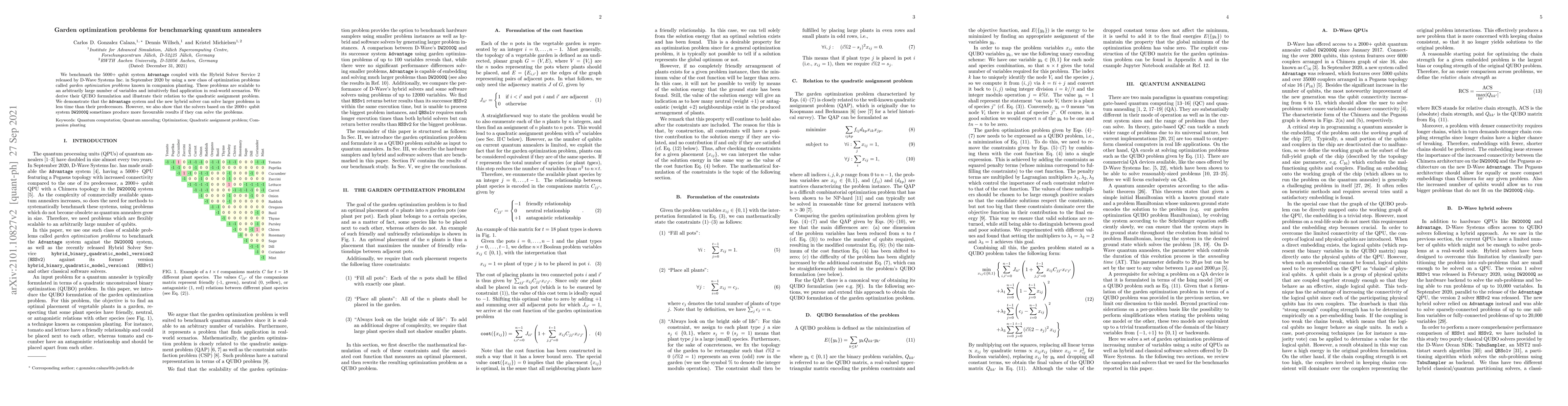Researchers benchmarked a quantum annealer with a new class of optimization problems called garden optimization problems, finding improved performance on larger problems compared to predecessors.