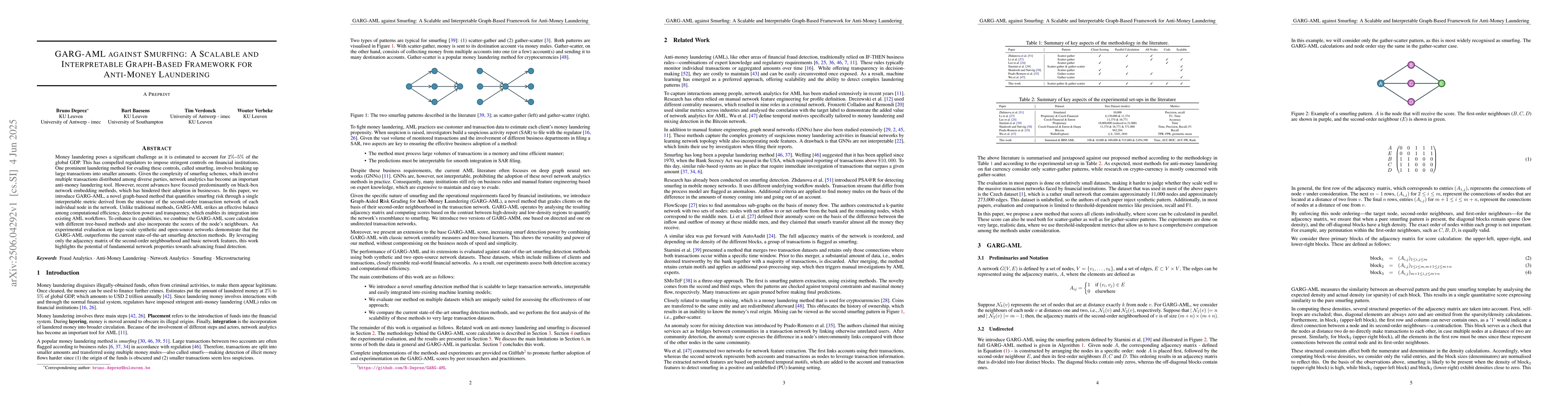 This research is significant as it addresses the challenge of money laundering, particularly smurfing, which evades stringent financial controls by breaking large transactions into smaller ones. By providing a scalable, interpretable, and efficient solution, GARG-AML can be integrated into existing AML workflows, potentially improving detection and compliance in financial institutions.