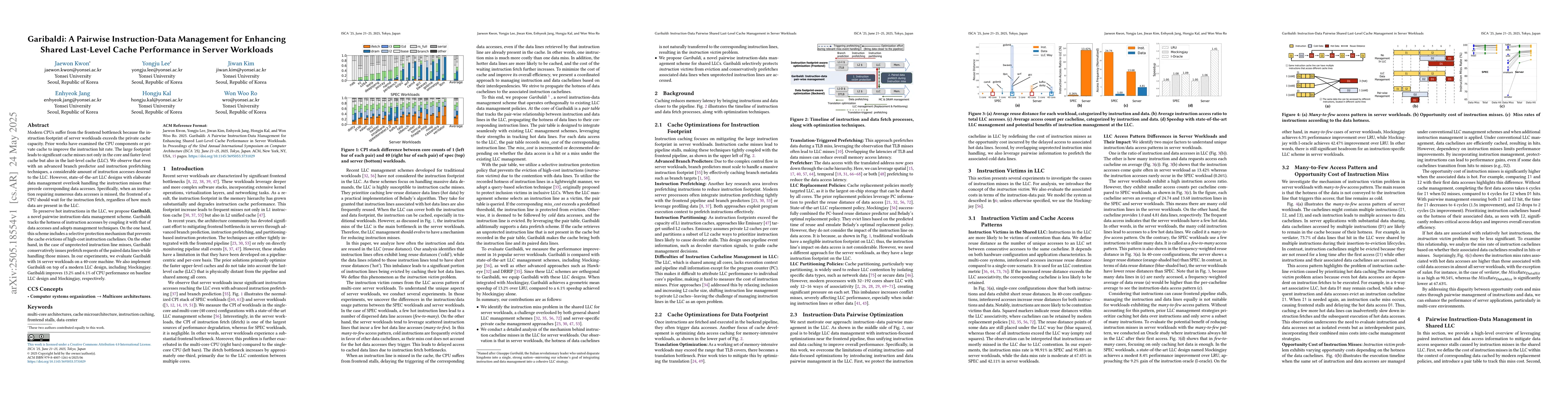 Garibaldi improves server workload performance by 13.2% and 6.1%, reducing cache misses by pairing instruction and data management for last-level cache optimization.