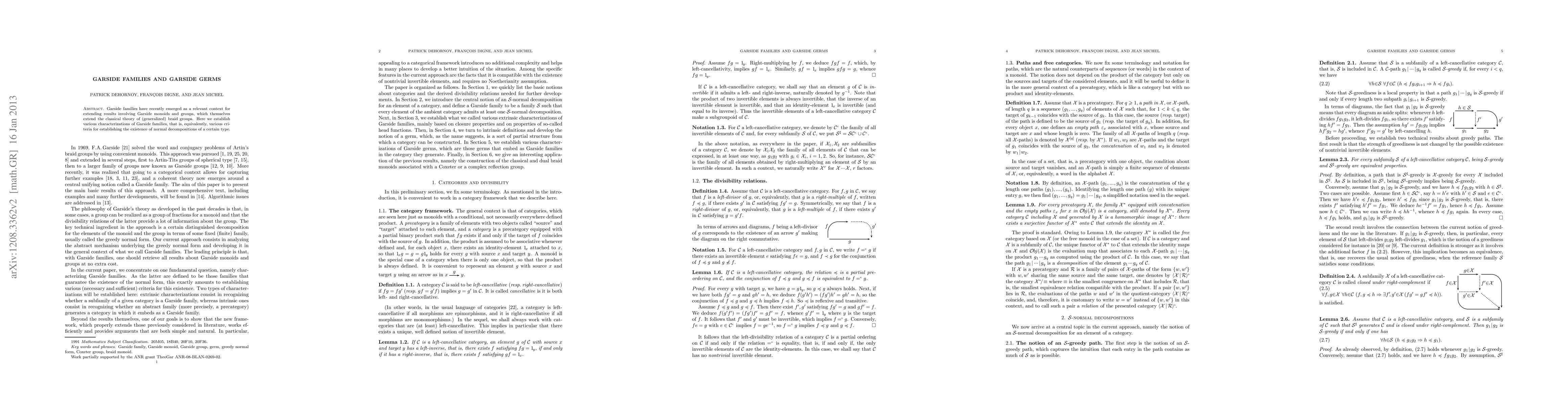 This paper explores Garside families, which extend the theory of Garside monoids and groups, and establishes various characterizations and criteria for normal decompositions within this context.