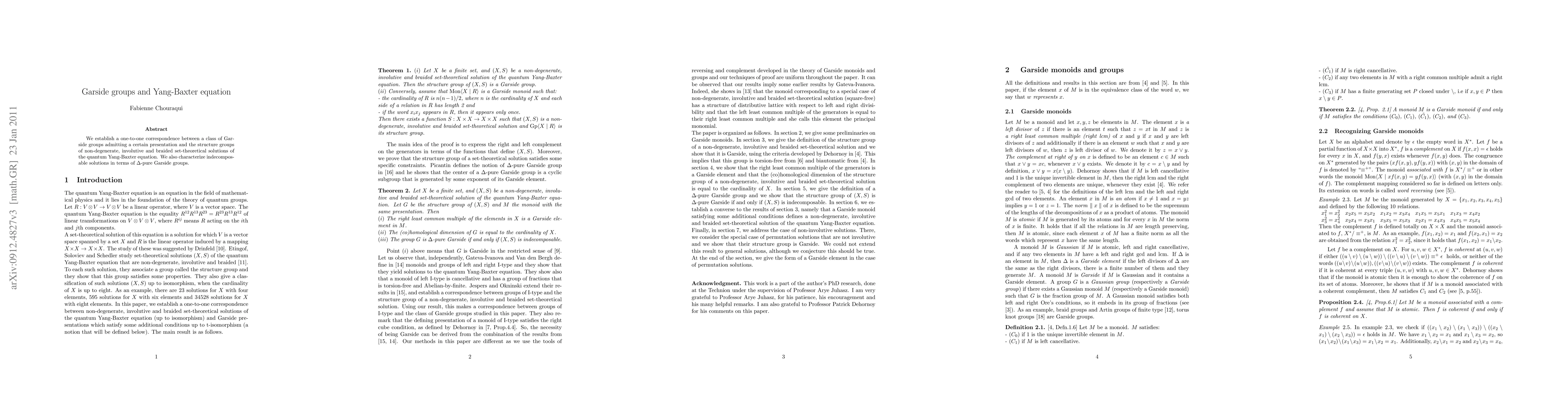 This paper establishes a one-to-one correspondence between Garside groups with a specific presentation and the structure groups of non-degenerate, involutive, and braided set-theoretical solutions of the quantum Yang-Baxter equation. It also characterizes indecomposable solutions using $\Delta$-pure Garside groups.