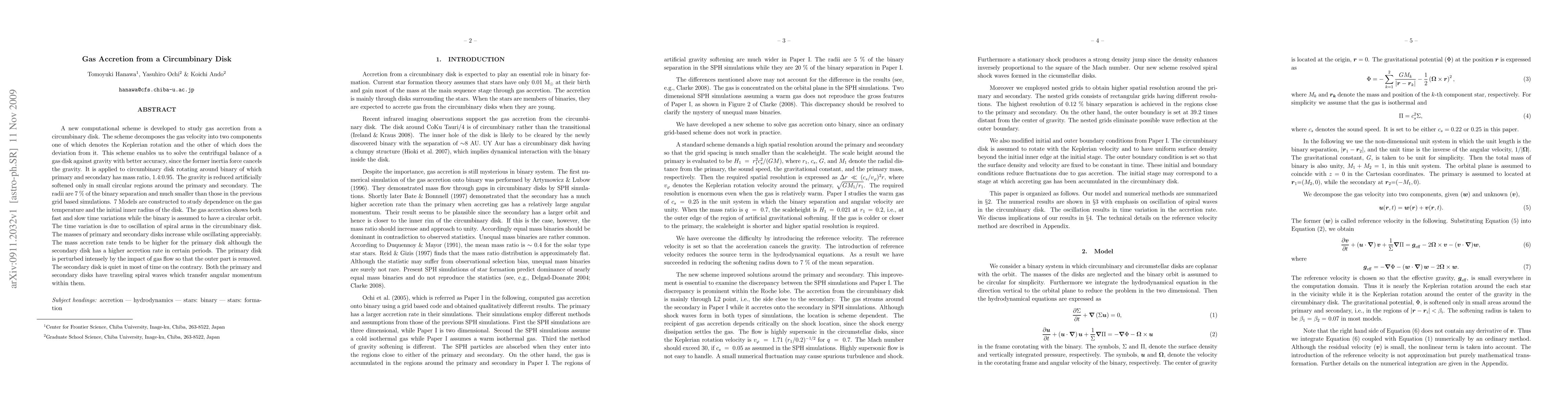This paper develops a new computational scheme to study gas accretion from a circumbinary disk, focusing on the decomposition of gas velocity into Keplerian and deviation components. The scheme reveals complex accretion dynamics, including fast and slow time variations due to spiral arm oscillations, with the primary disk showing higher mass accretion rates despite secondary disk fluctuations.