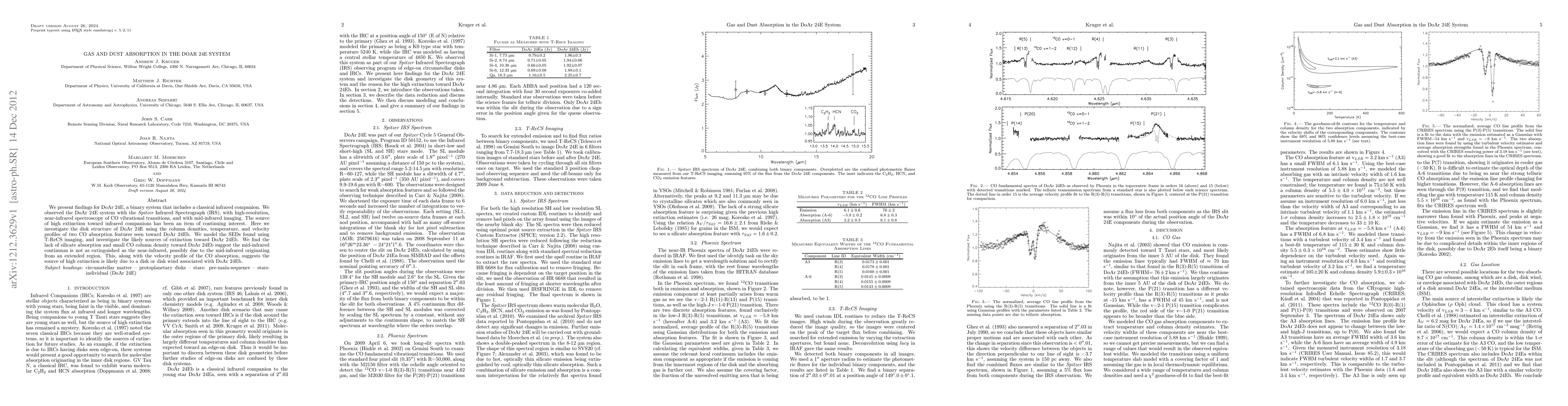 We present findings for DoAr 24E, a binary system that includes a classical infrared companion. We observed the DoAr 24E system with the Spitzer Infrared Spectrograph (IRS), with high-resolution, near-infrared spectroscopy of CO vibrational transitions, and with mid-infrared imaging. The source of high extinction toward infrared companions has been an item of continuing interest. Here we investigate the disk structure of DoAr 24E using the column densities, temperature, and velocity profiles of two CO absorption features seen toward DoAr 24Eb. We model the SEDs found using T-ReCS imaging, and investigate the likely sources of extinction toward DoAr 24Eb. We find the lack of silicate absorption and small CO column density toward DoAr 24Eb suggest the mid-infrared continuum is not as extinguished as the near-infrared, possibly due to the mid-infrared originating from an extended region. This, along with the velocity profile of the CO absorption, suggests the source of high extinction is likely due to a disk or disk wind associated with DoAr 24Eb.