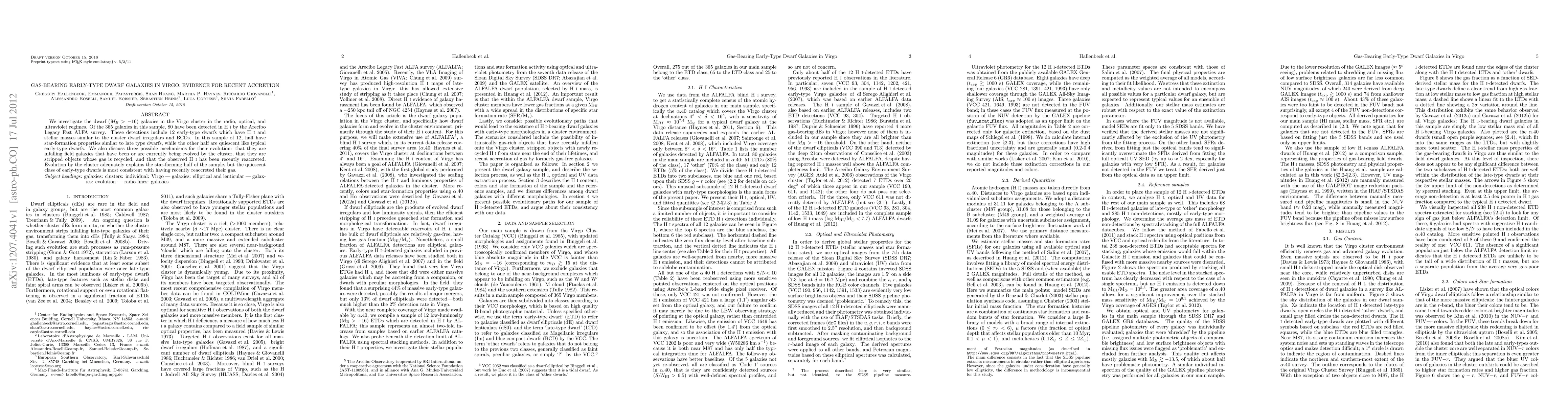 We investigate the dwarf (M_B> -16) galaxies in the Virgo cluster in the radio, optical, and ultraviolet regimes. Of the 365 galaxies in this sample, 80 have been detected in HI by the Arecibo Legacy Fast ALFA survey. These detections include 12 early-type dwarfs which have HI and stellar masses similar to the cluster dwarf irregulars and BCDs. In this sample of 12, half have star-formation properties similar to late type dwarfs, while the other half are quiescent like typical early-type dwarfs. We also discuss three possible mechanisms for their evolution: that they are infalling field galaxies that have been or are currently being evolved by the cluster, that they are stripped objects whose gas is recycled, and that the observed HI has been recently reaccreted. Evolution by the cluster adequately explains the star-forming half of the sample, but the quiescent class of early-type dwarfs is most consistent with having recently reaccreted their gas.