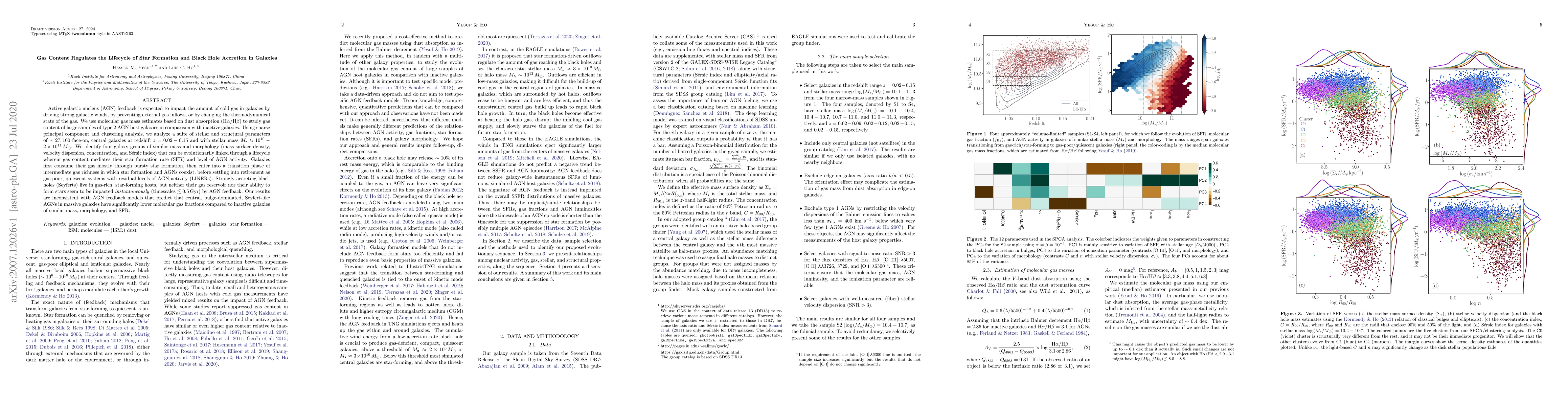 This research analyzes molecular gas content in large samples of type 2 Active Galactic Nuclei (AGN) host galaxies versus inactive galaxies. Using dust absorption estimates, they identify four galaxy groups with similar characteristics, linked by a lifecycle mediated by gas content. The study finds that strongly accreting black holes (Seyferts) reside in gas-rich, star-forming hosts, and contradicts models suggesting AGN feedback lowers gas fractions in massive galaxies. AGN feedback does not instantaneously impact gas reservoirs or star formation (timescales <0.5 Gyr).