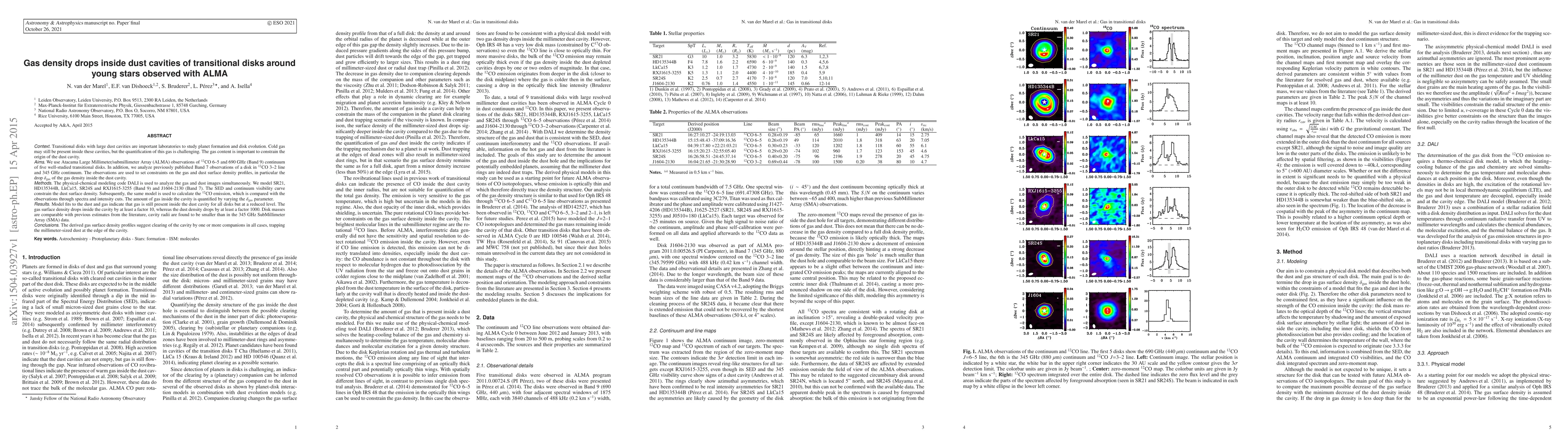 This study uses ALMA observations to quantify the gas density inside dust cavities in transitional disks, finding that gas density drops by at least a factor of 10 within these cavities, while dust density drops by at least a factor of 1000. The results suggest that planet formation and disk evolution are influenced by the clearing of cavities by companions.