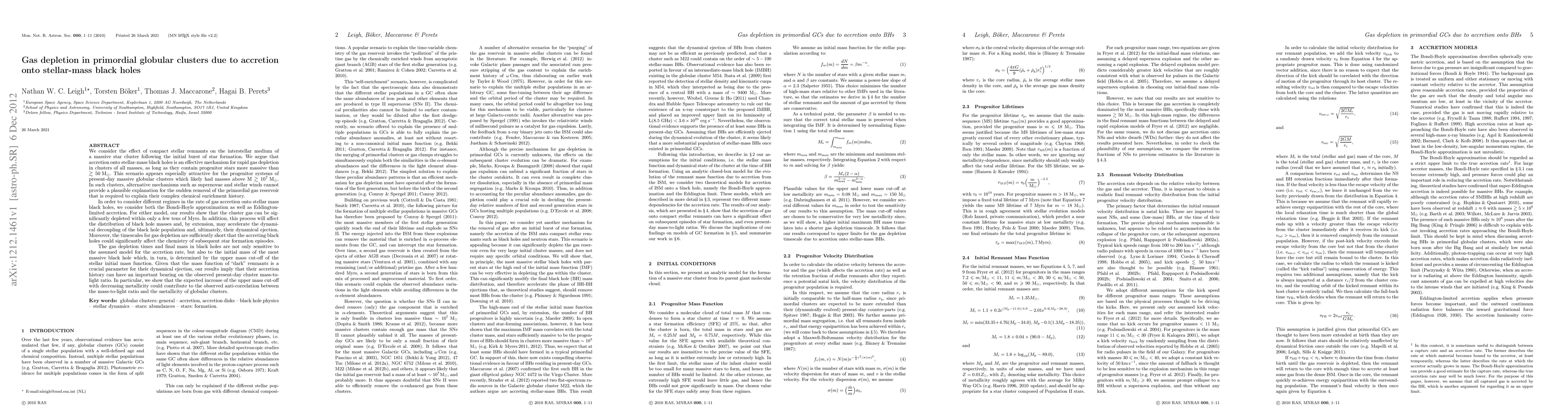 (abridged) We consider the effect of stellar remnants on the interstellar medium of a massive star cluster following the initial burst of star formation. We argue that accretion onto stellar-mass black holes (BHs) is an effective mechanism for rapid gas depletion in clusters of all masses, as long as they contain progenitor stars more massive than \gtrsim 50\msun. This scenario is attractive for the progenitor systems of present-day massive globular clusters (GCs) which likely had masses M \gtrsim 10^7\msun. In such clusters, supernovae and stellar winds cannot provide a plausible explanation for the sudden removal of the primordial gas reservoir that is required to explain their complex chemical enrichment history. In order to consider different regimes in the gas accretion rate onto stellar-mass BHs, we consider both the Bondi-Hoyle and Eddington approximations. For either model, our results show that the gas can be significantly depleted within only a few tens of Myrs. This process will affect the distribution of BH masses, and may accelerate the dynamical decoupling of the BH population and, ultimately, their dynamical ejection. Moreover, the timescales for gas depletion are sufficiently short that the accreting BHs could significantly affect the chemistry of subsequent star formation episodes. The gas depletion times and final mass in BHs are sensitive to the assumed model for the accretion rate, and to the initial mass of the most massive BH which, in turn, is determined by the upper mass cut-off of the stellar IMF. Our results imply that the remnant accretion history can have an important bearing on the observed present-day cluster mass-to-light ratio. In particular, we show that an increase of the upper mass cut-off with decreasing metallicity could contribute to the observed anti-correlation between the mass-to-light ratio and the metallicity of GCs.