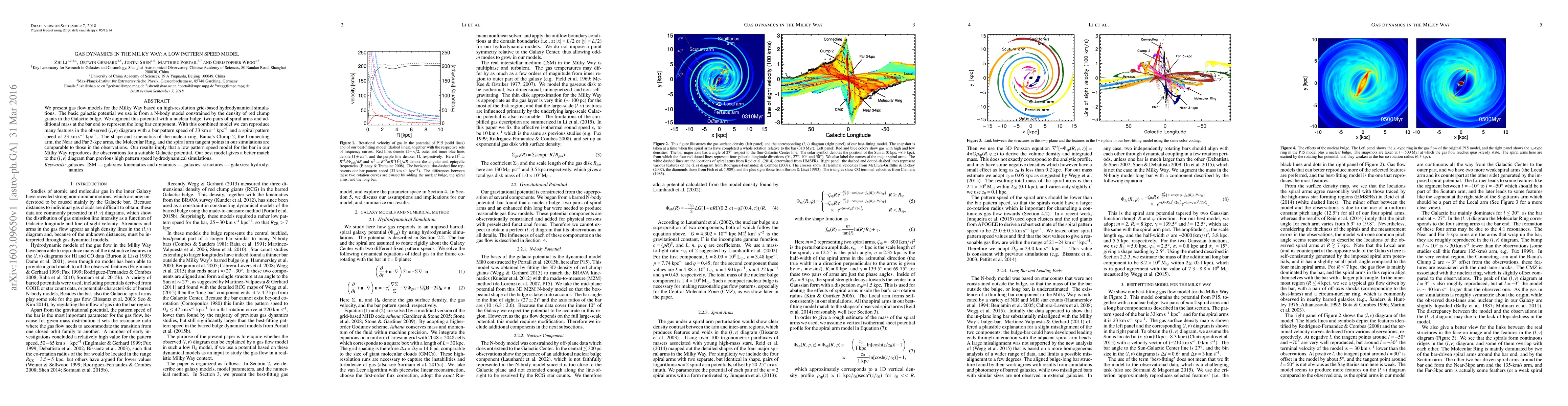 This paper presents high-resolution hydrodynamical simulations of gas dynamics in the Milky Way, showing that a low pattern speed model for the bar can reproduce observed features such as the nuclear ring and spiral arms, outperforming previous high pattern speed models.