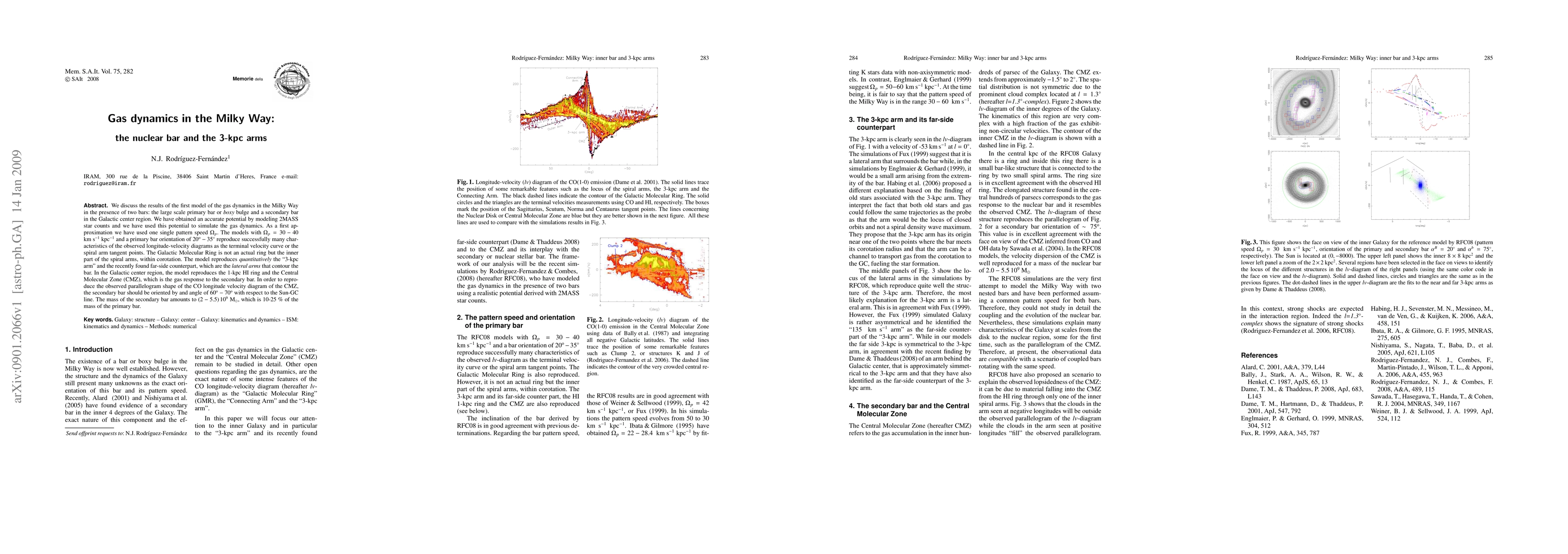 This paper presents a model of gas dynamics in the Milky Way considering two bars: a primary bar and a secondary bar in the Galactic center. The model accurately reproduces observed features such as the 3-kpc arm and the 1-kpc HI ring, suggesting the secondary bar's orientation and mass.