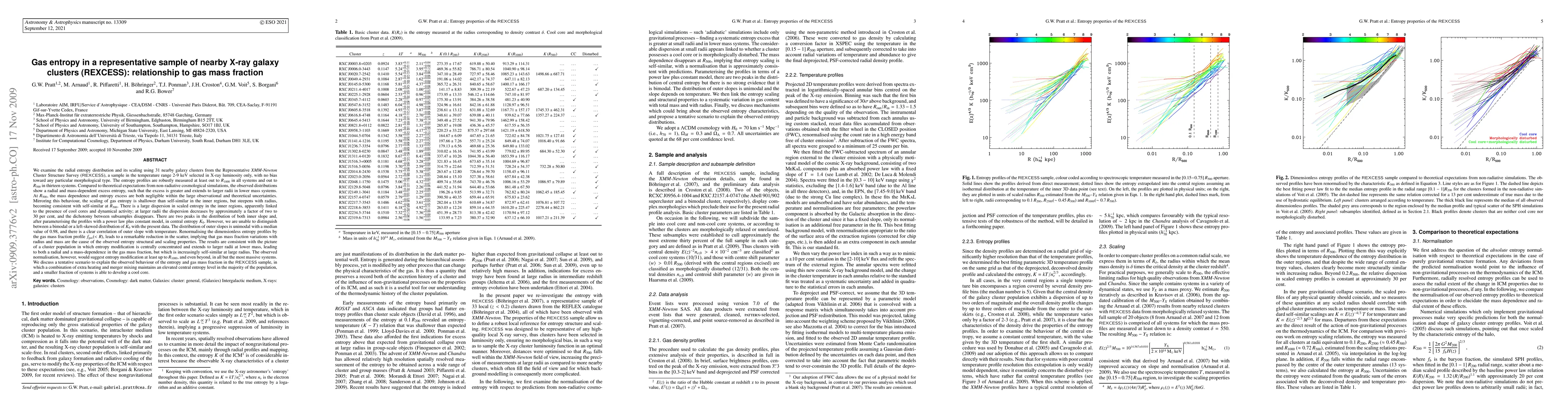 A study of 31 nearby galaxy clusters found that gas entropy is greater and extends to larger radii in lower mass systems, with a mass-dependent excess entropy. The distribution of gas entropy is linked to the presence of cool cores and dynamical activity, suggesting an elevated central entropy level in most systems.