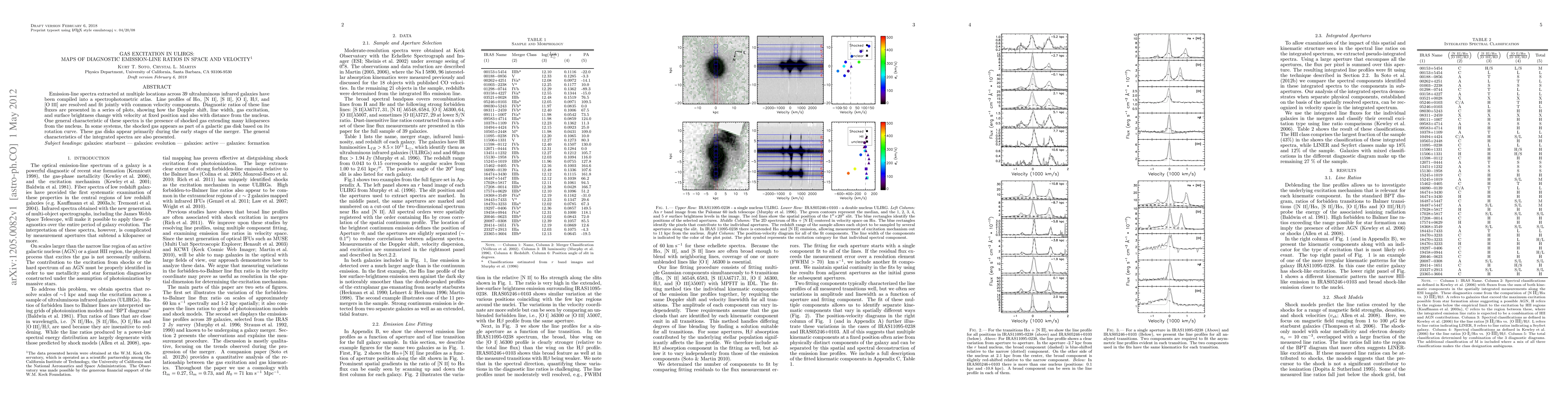 Emission-line spectra extracted at multiple locations across 39 ultraluminous infrared galaxies have been compiled into a spectrophotometric atlas. Line profiles of H alpha, [N II], [S II], [O I], H beta, and [O III] are resolved and fit jointly with common velocity components. Diagnostic ratios of these line fluxes are presented in a series of plots, showing how the Doppler shift, line width, gas excitation, and surface brightness change with velocity at fixed position and also with distance from the nucleus. One general characteristic of these spectra is the presence of shocked gas extending many kiloparsecs from the nucleus. In some systems, the shocked gas appears as part of a galactic gas disk based on its rotation curve. These gas disks appear primarily during the early stages of the merger. The general characteristics of the integrated spectra are also presented.