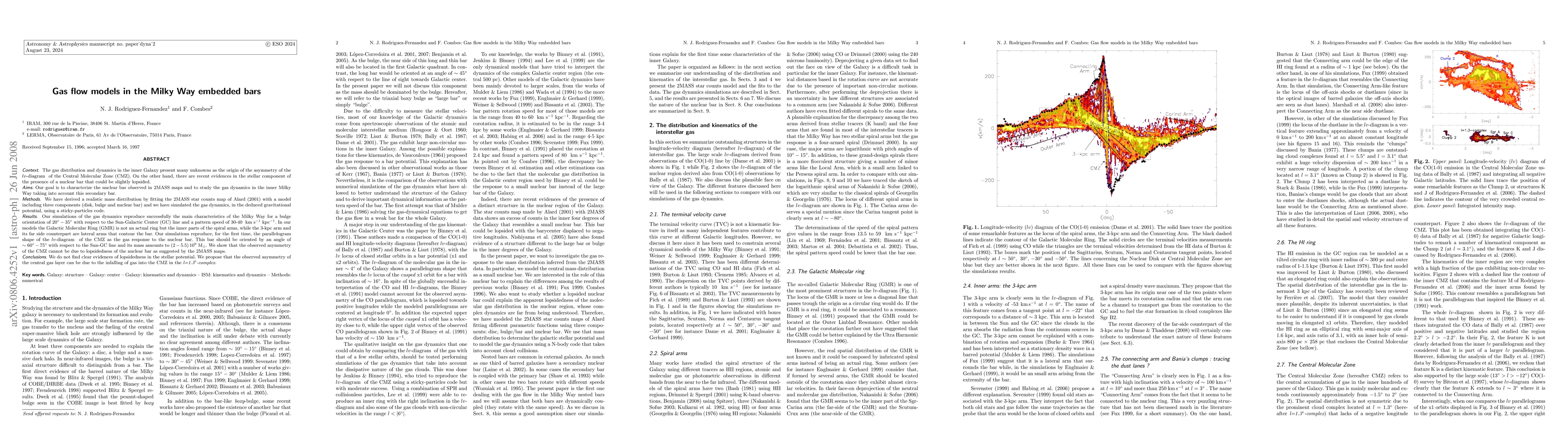 This paper investigates the gas dynamics in the Milky Way's inner regions, focusing on the nuclear bar's influence on the Central Molecular Zone (CMZ). Simulations reveal that the CMZ's asymmetry is likely due to gas infall rather than a lopsided nuclear bar, and the CMZ's lv-diagram shape is reproduced by the bar's gravitational effects.