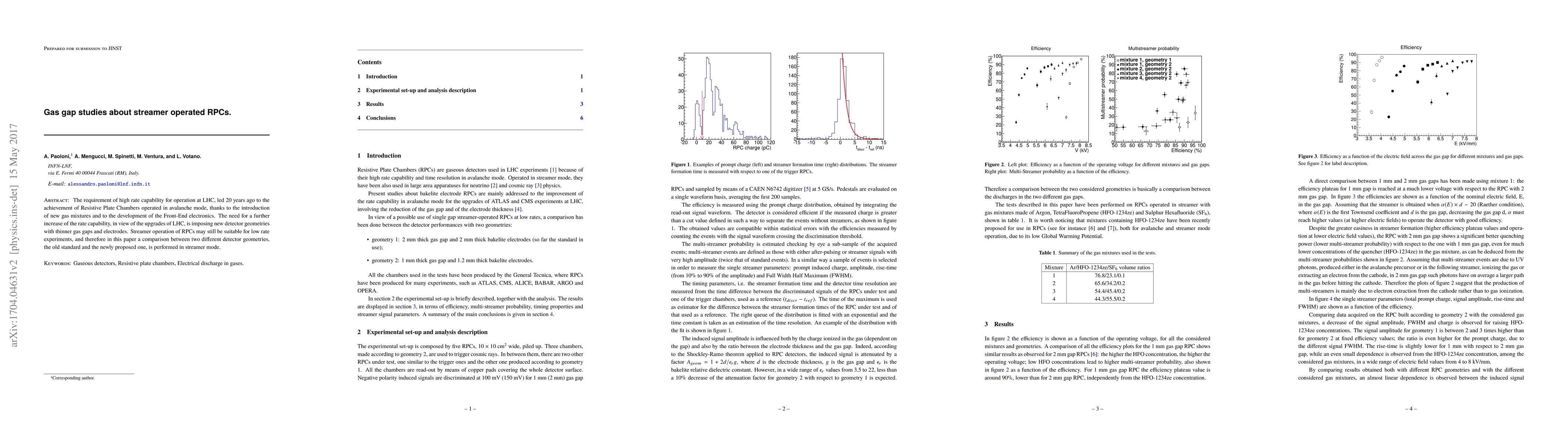 Researchers compared two detector geometries in streamer mode to study gas gap studies for high-rate capability in LHC upgrades. They found that the new geometry with thinner gaps may still be suitable for low-rate experiments.
