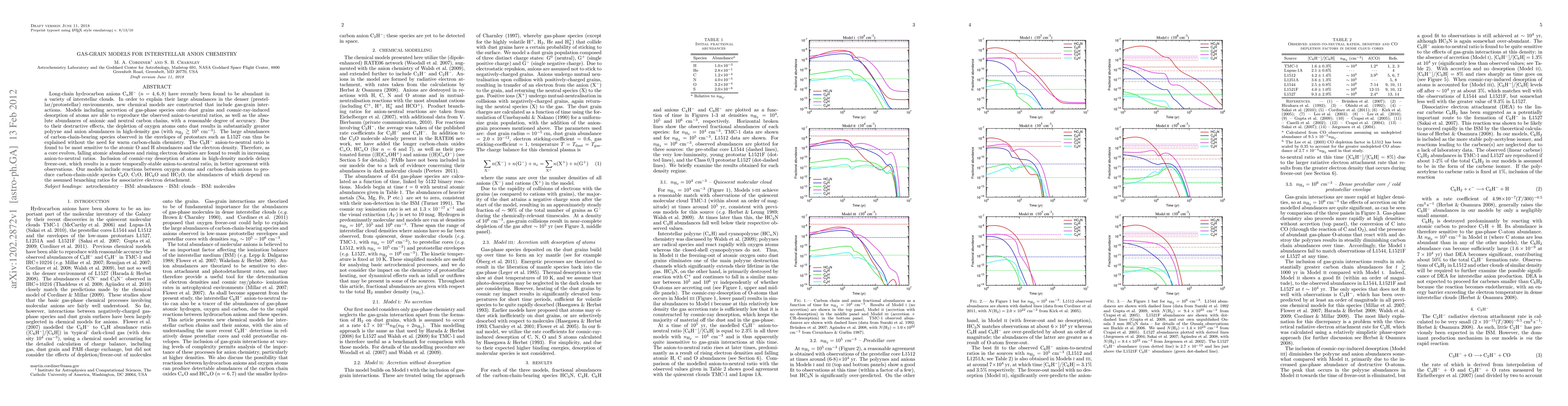 This paper constructs gas-grain models to explain the abundance of long-chain hydrocarbon anions in interstellar clouds, finding that gas-grain interactions, including accretion and cosmic-ray-induced desorption, can reproduce observed anion-to-neutral ratios without requiring warm chemistry. The models show that falling atomic oxygen and rising electron densities increase anion-to-neutral ratios, and cosmic-ray desorption delays freeze-out, enhancing temporal stability.