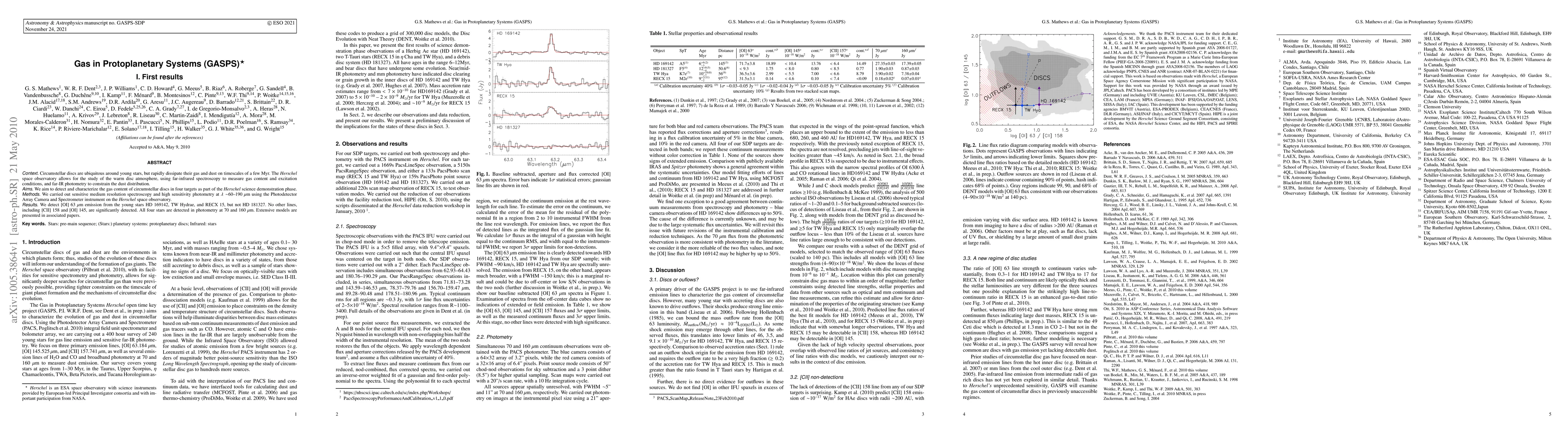 Context - Circumstellar discs are ubiquitous around young stars, but rapidly dissipate their gas and dust on timescales of a few Myr. The Herschel space observatory allows for the study of the warm disc atmosphere, using far-infrared spectroscopy to measure gas content and excitation conditions, and far-IR photometry to constrain the dust distribution. Aims - We aim to detect and characterize the gas content of circumstellar discs in four targets as part of the Herschel science demonstration phase. Methods - We carried out sensitive medium resolution spectroscopy and high sensitivity photometry at lambda ~60-190 micron using the Photodetector Array Camera and Spectrometer instrument on the Herschel space observatory. Results - We detect [OI] 63 micron emission from the young stars HD 169142, TW Hydrae, and RECX 15, but not HD 181327. No other lines, including [CII] 158 and [OI] 145, are significantly detected. All four stars are detected in photometry at 70 and 160 micron. Extensive models are presented in associated papers.